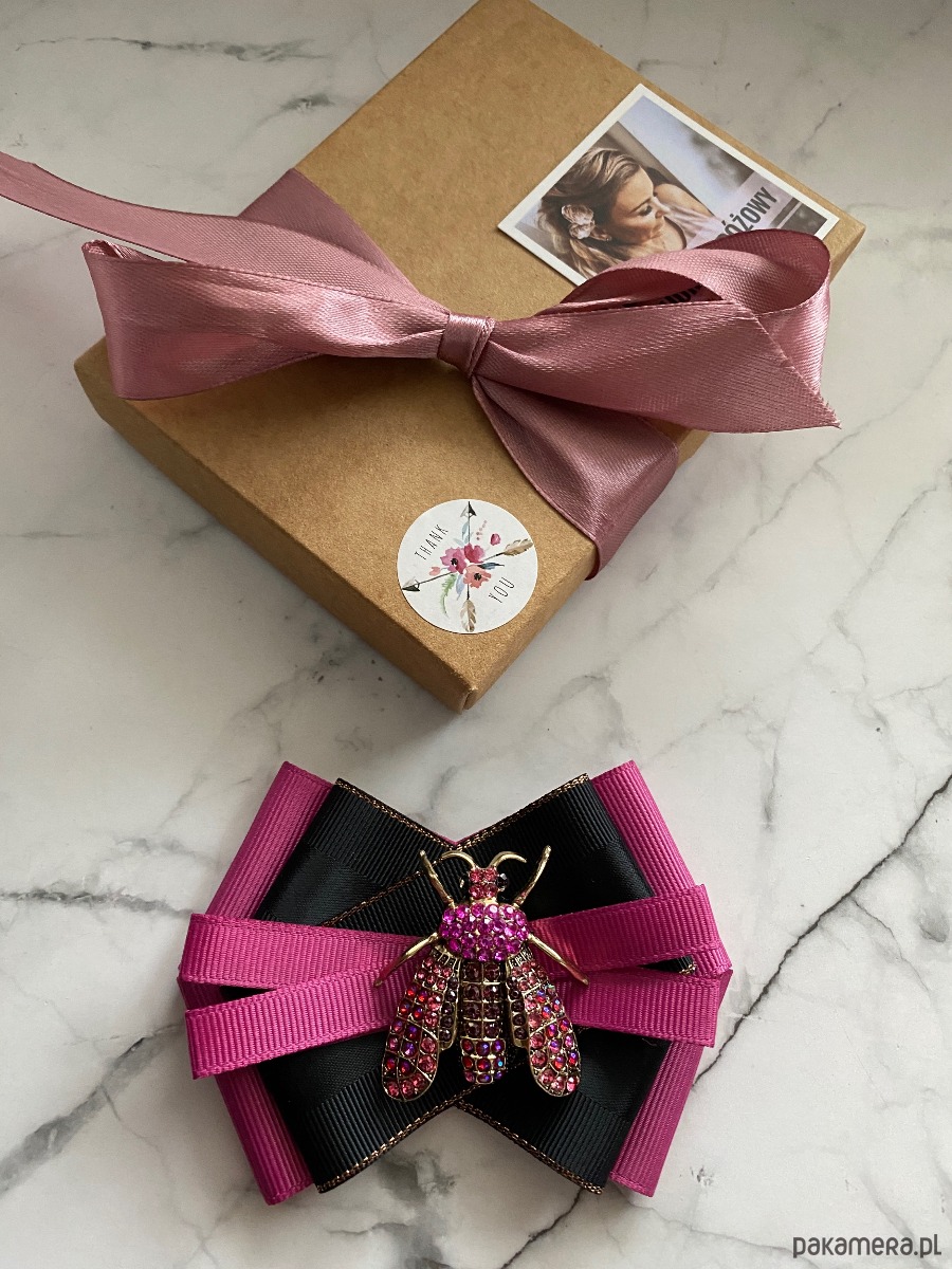 Broszka wykonana z wysokiej jakości taśm i dodatków.