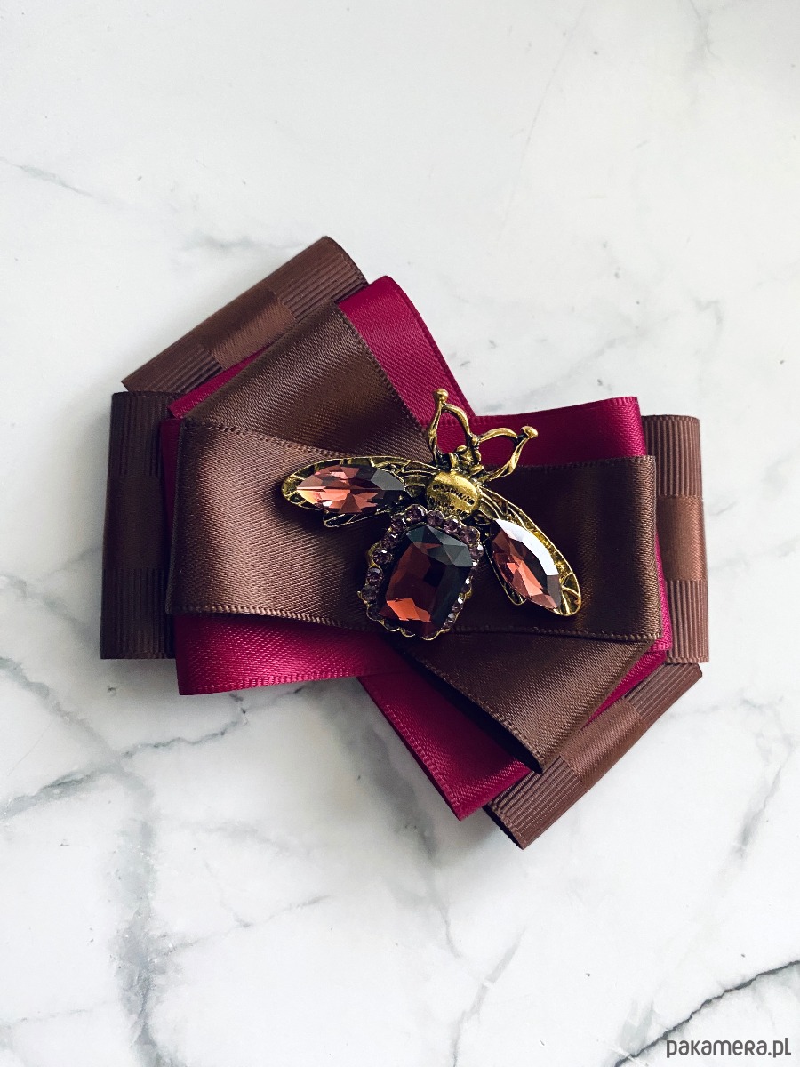 Brosza z cudnym Owadem z kryształków w kolorze wina New Jesień