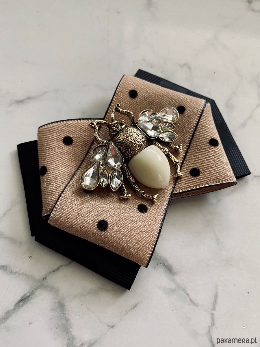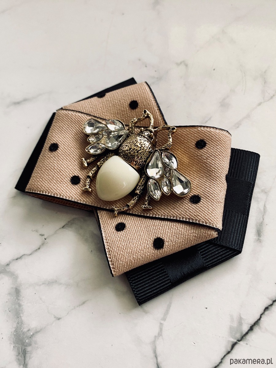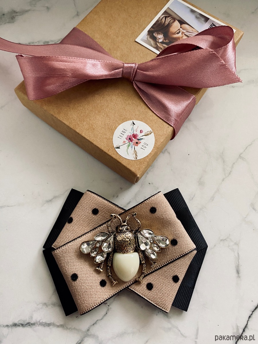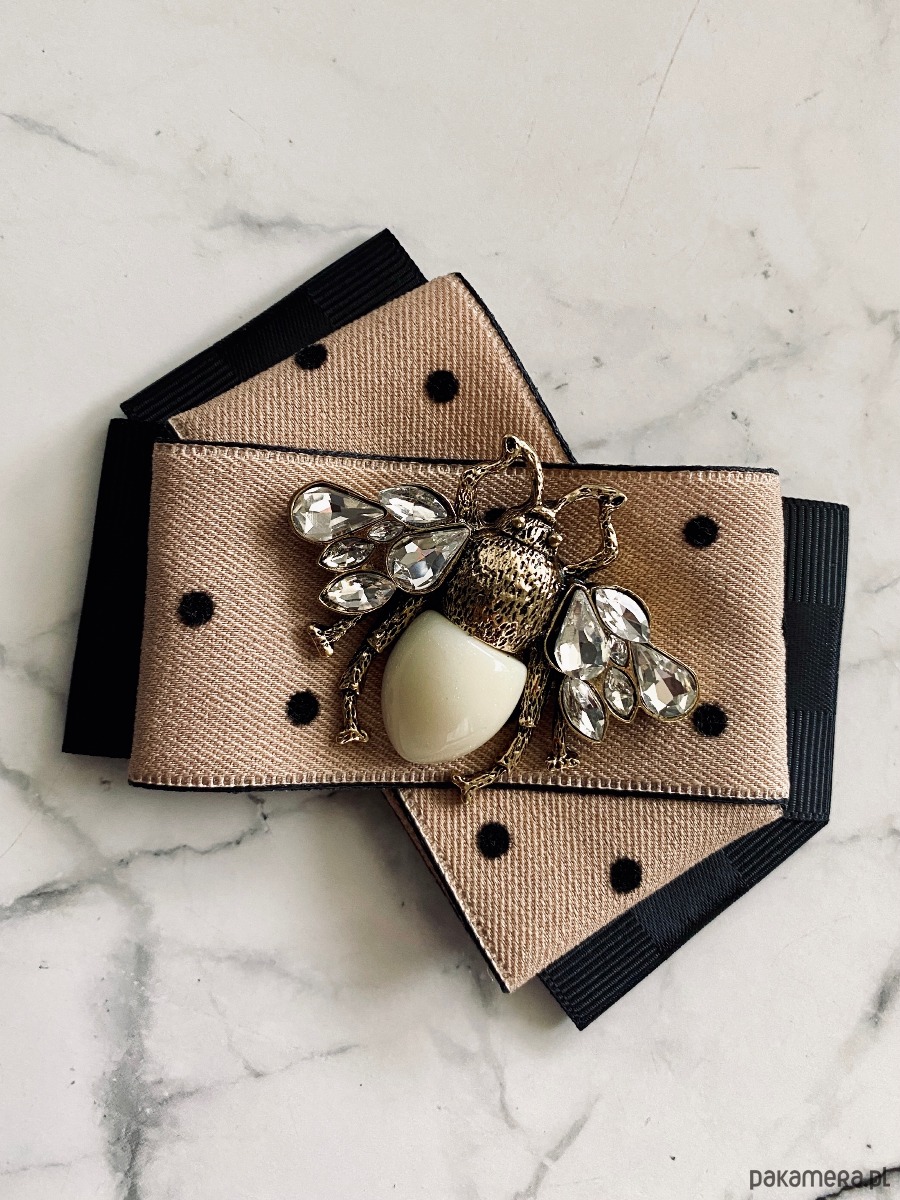 Broszka wykonana z wysokiej jakości taśm i dodatków.
