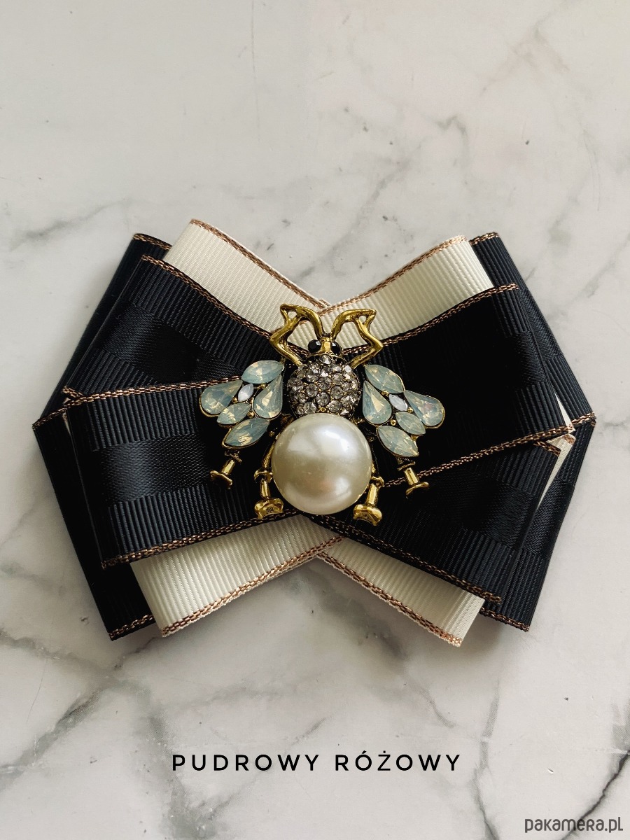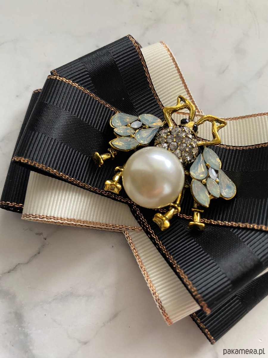 Piękna okazala ozdoba na środku, Owad wykonany z dużej perły i krysztalkow.