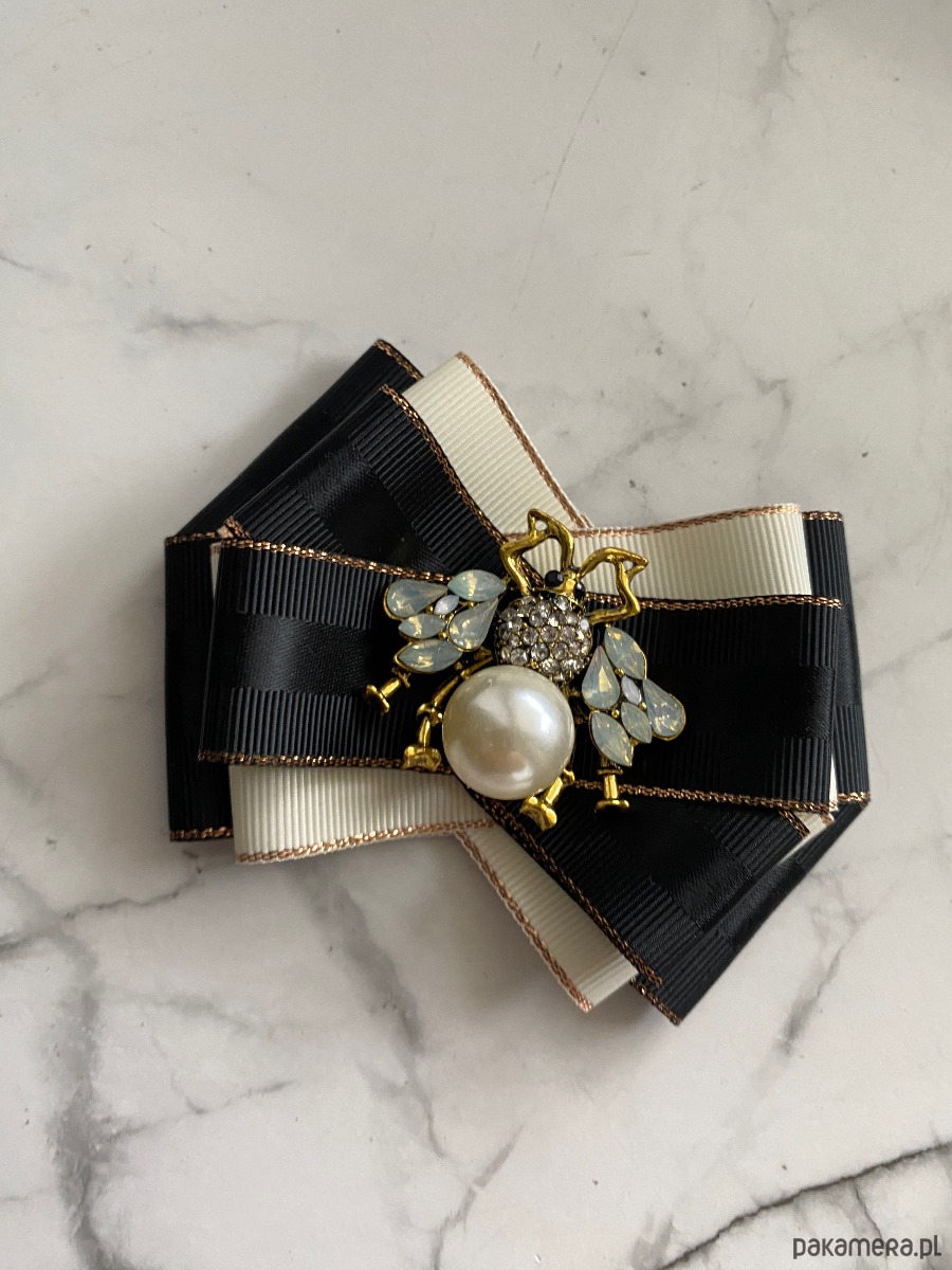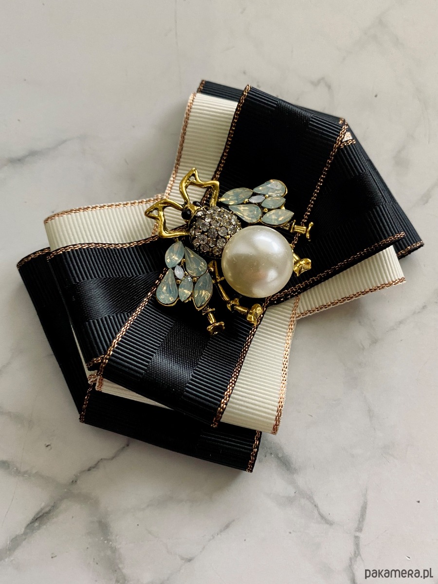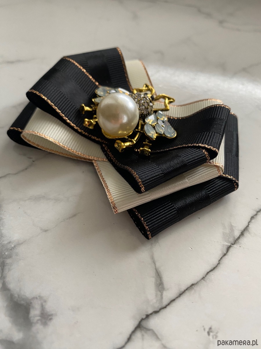 Broszka wykonana z wysokiej jakości taśm i dodatków.