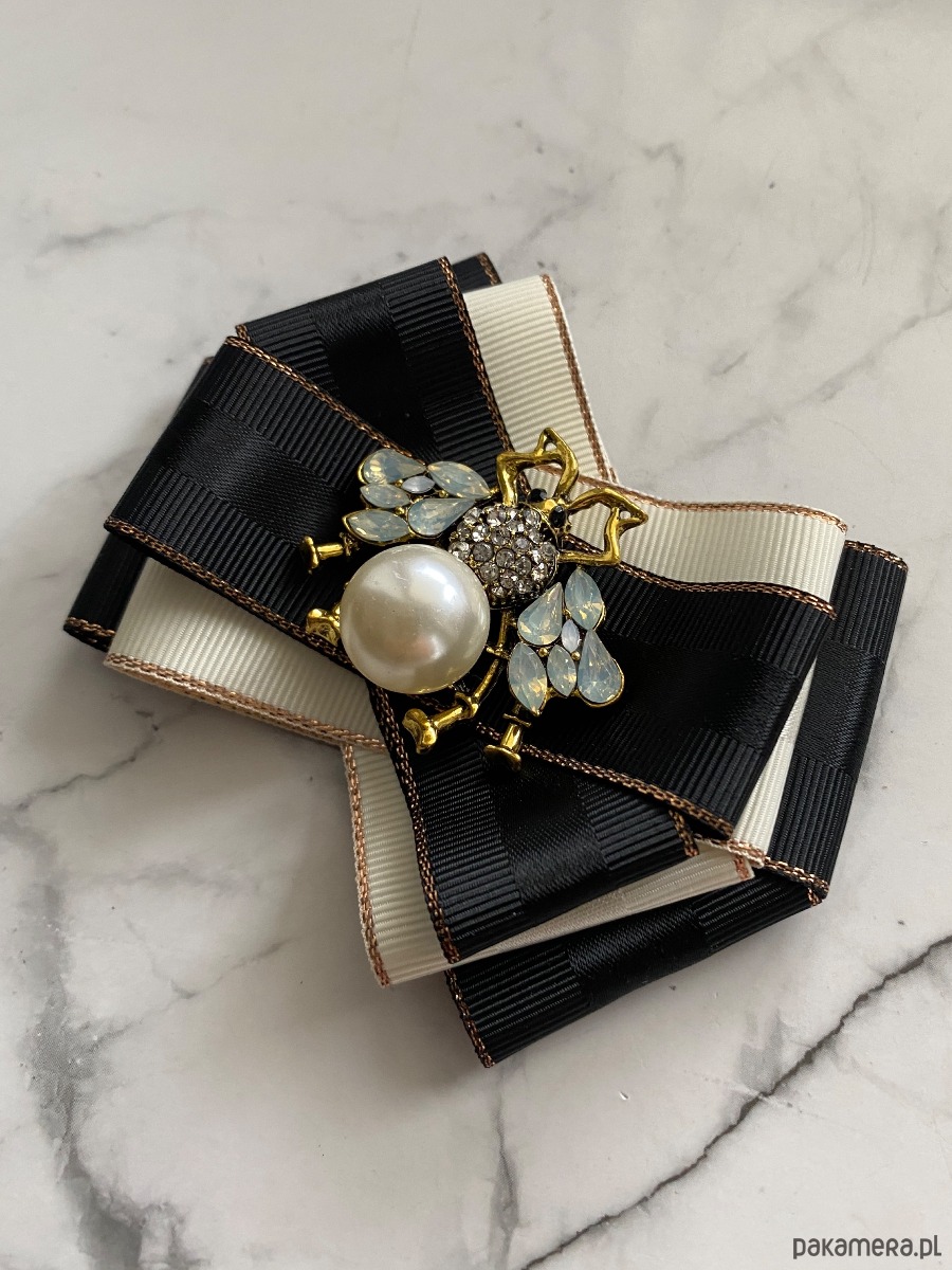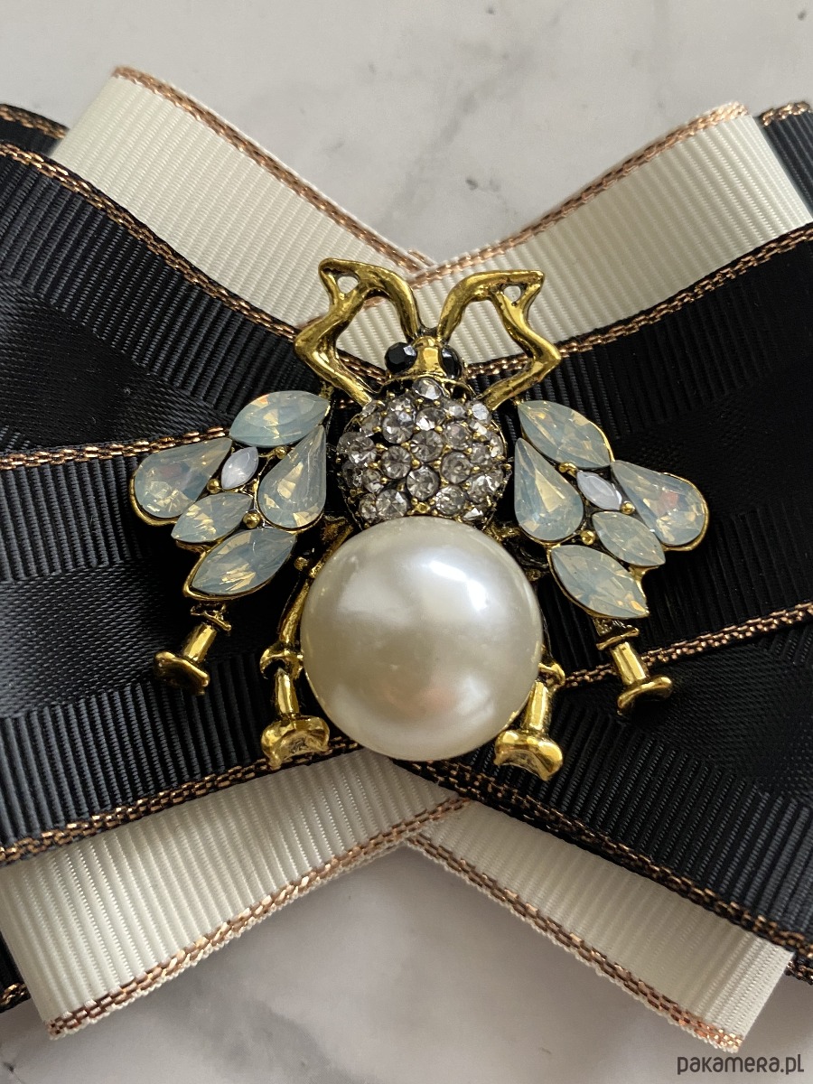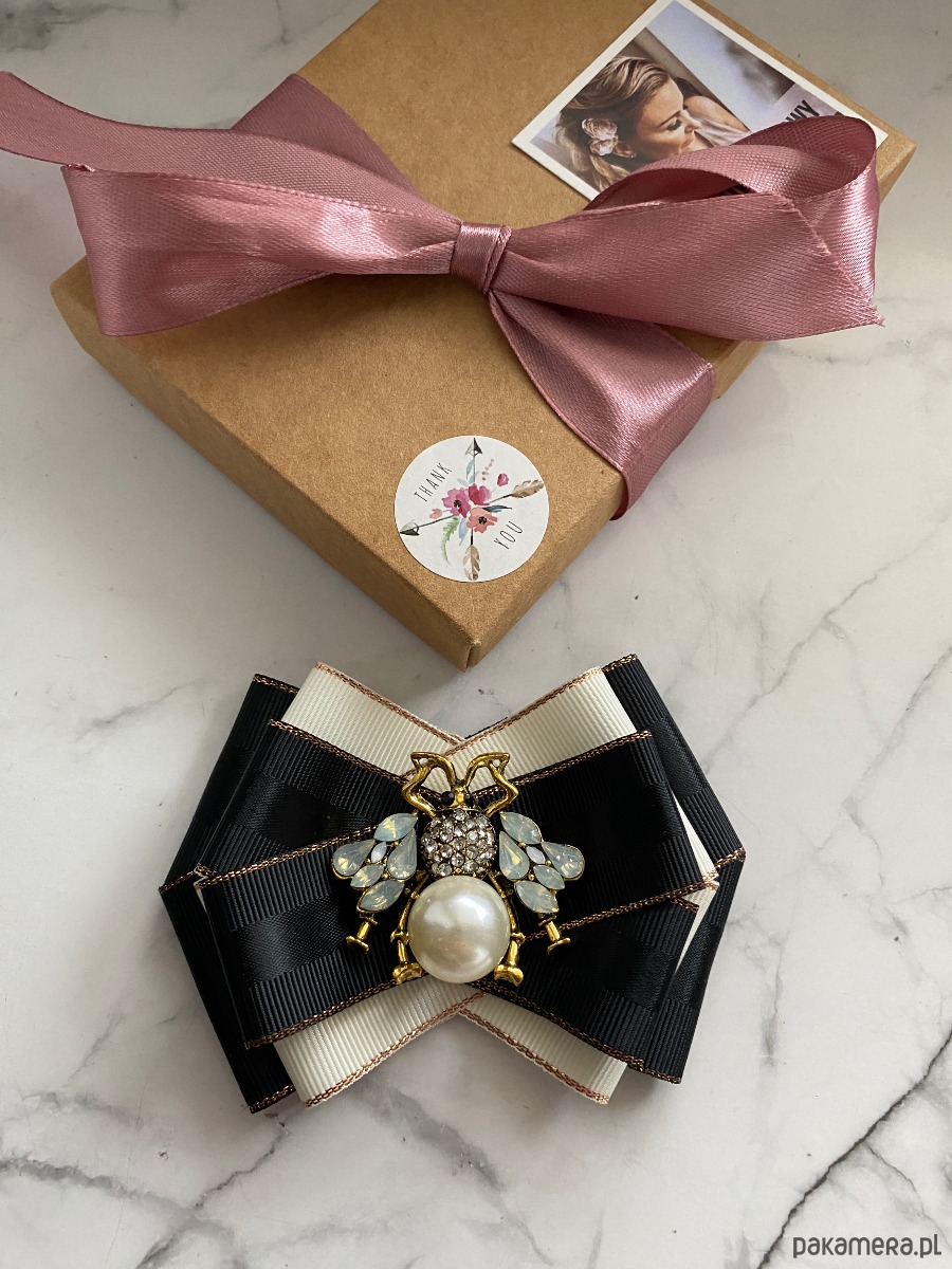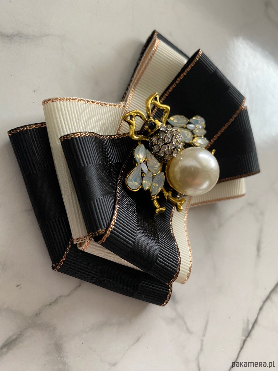 Broszka wykonana z wysokiej jakości taśm i dodatków.