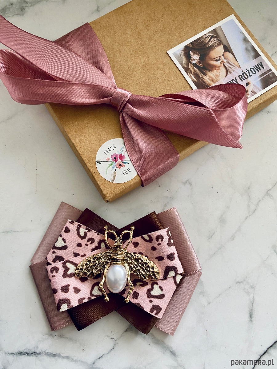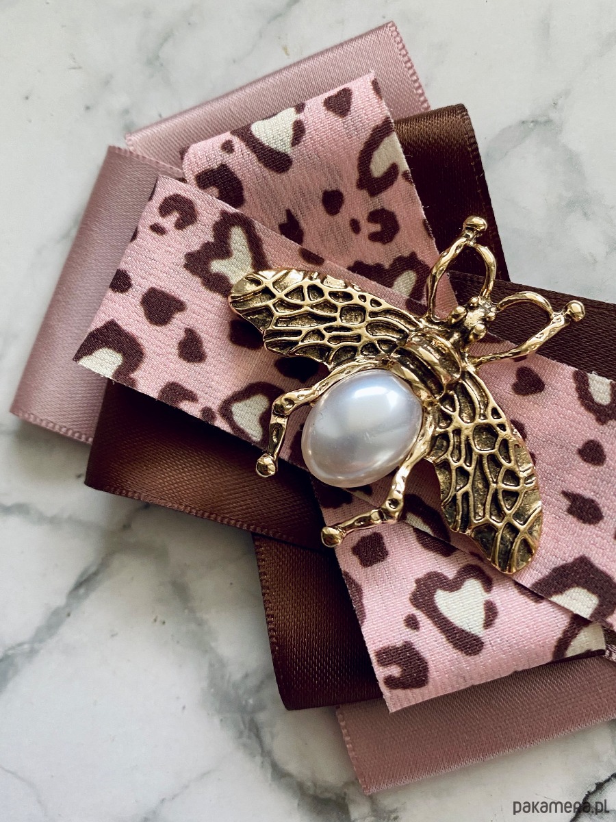 Broszka wykonana z wysokiej jakości taśm i dodatków.