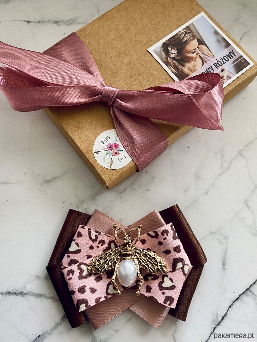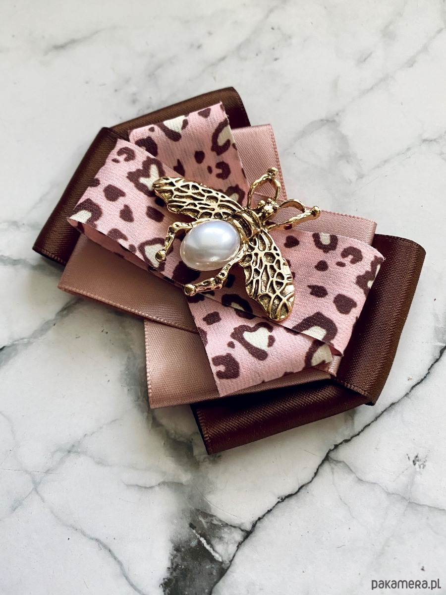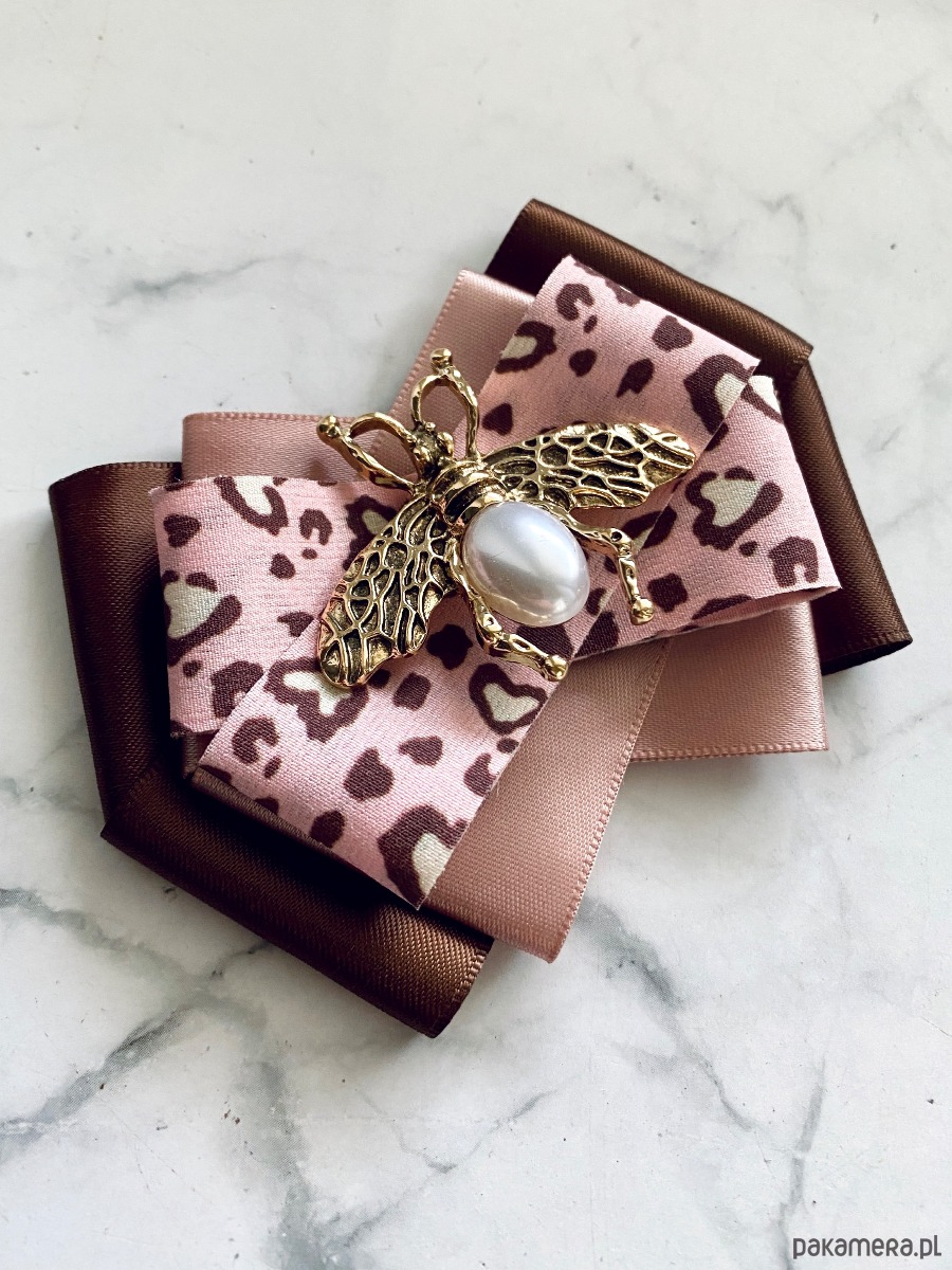 Broszka wykonana z wysokiej jakości taśm i dodatków.