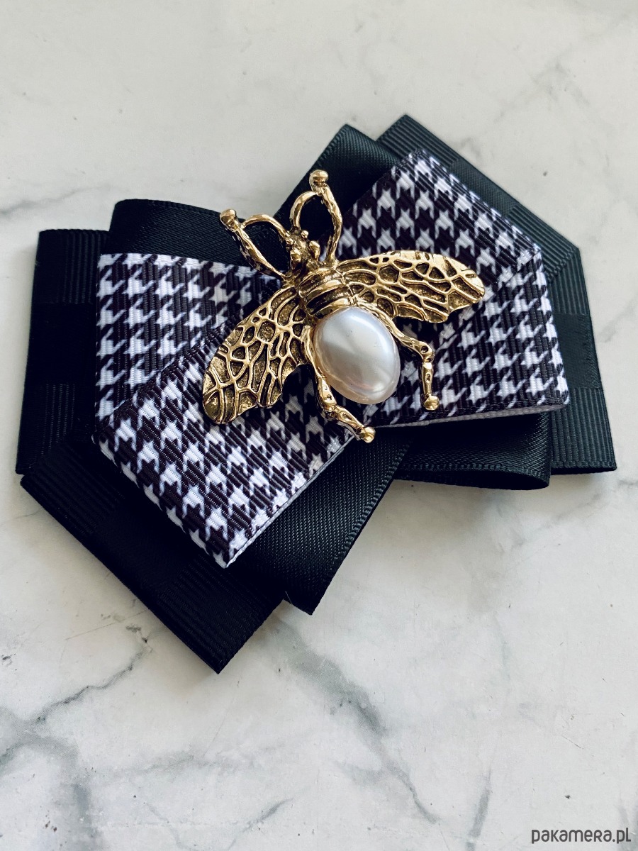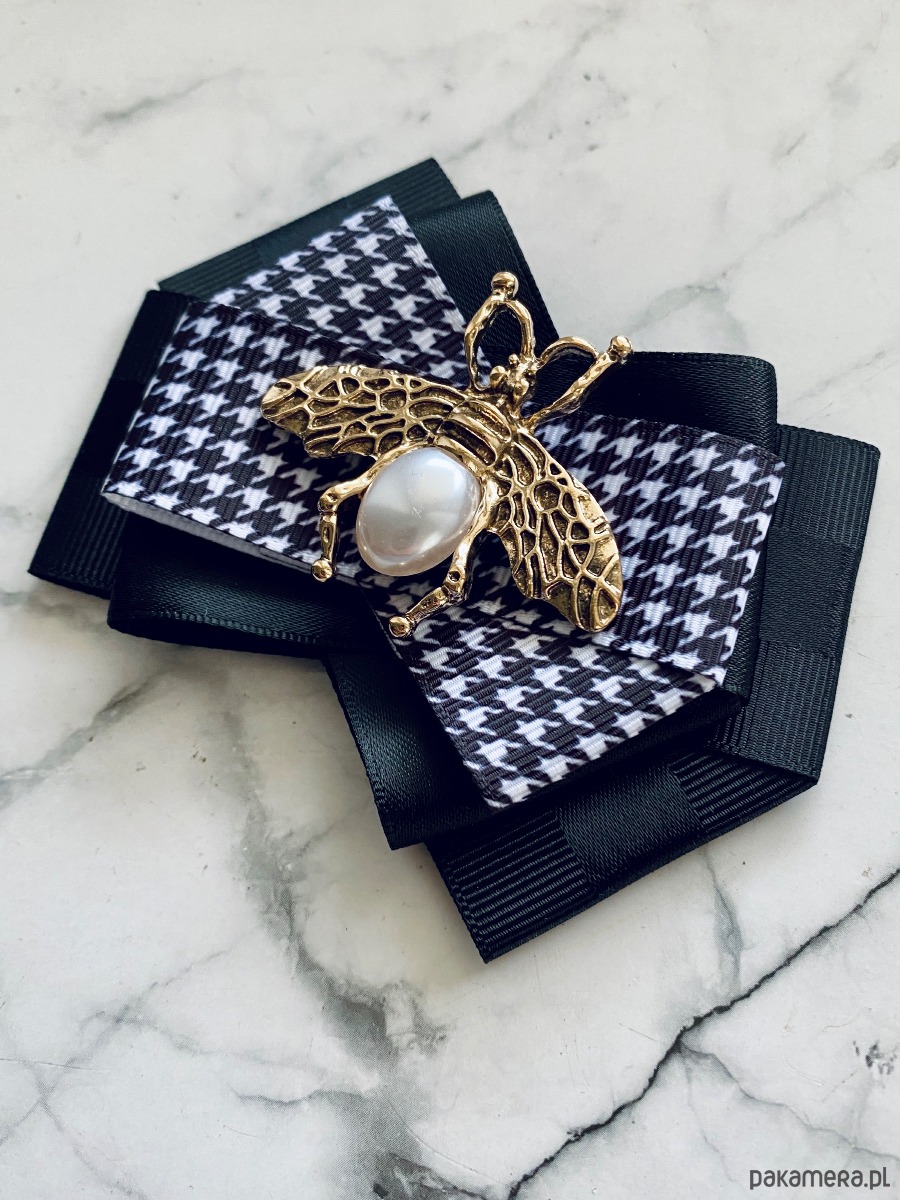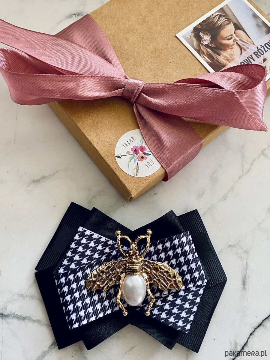Broszka wykonana z wysokiej jakości taśm i dodatków.