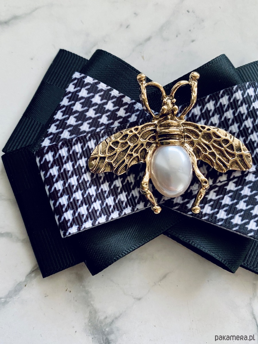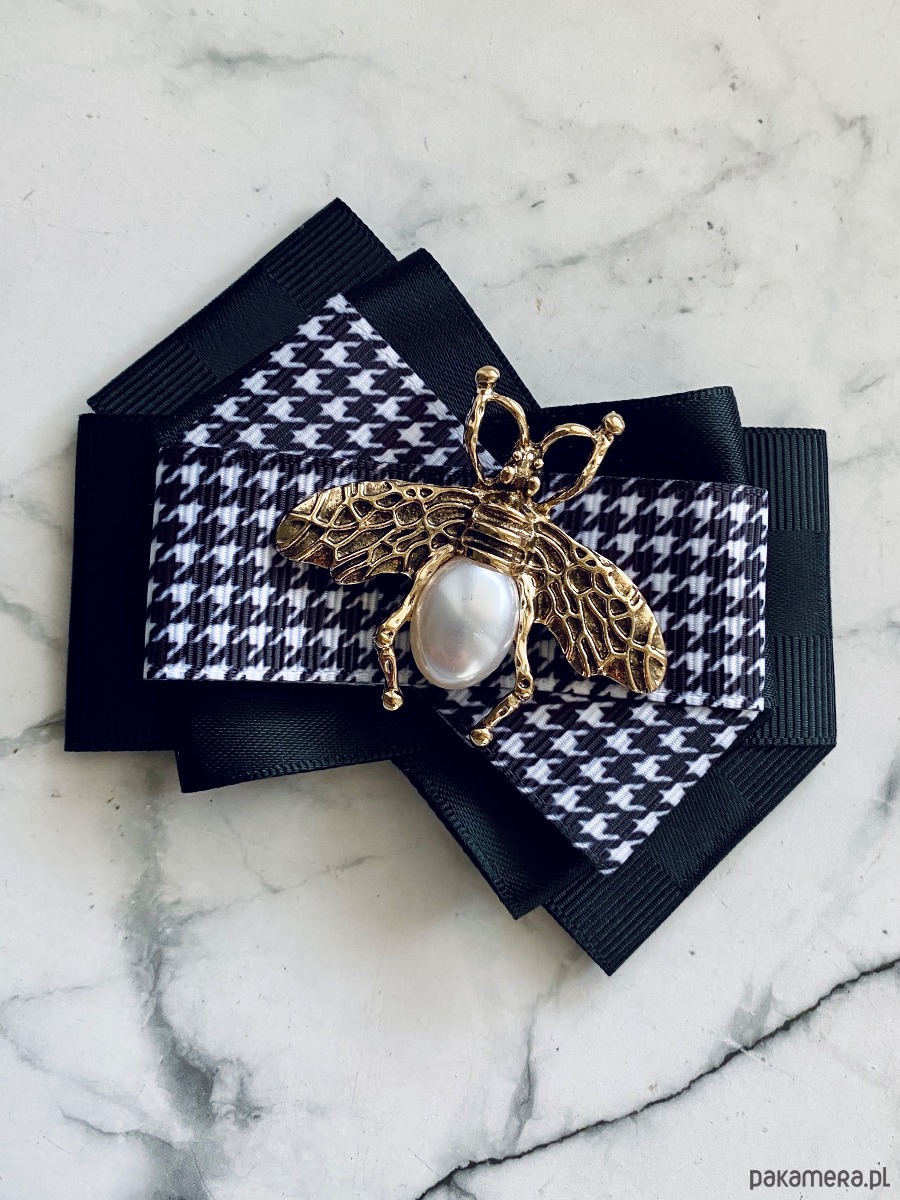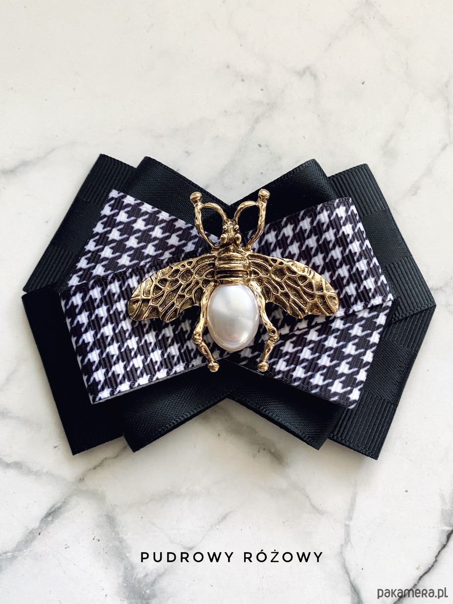 Broszka wykonana z wysokiej jakości taśm i dodatków.