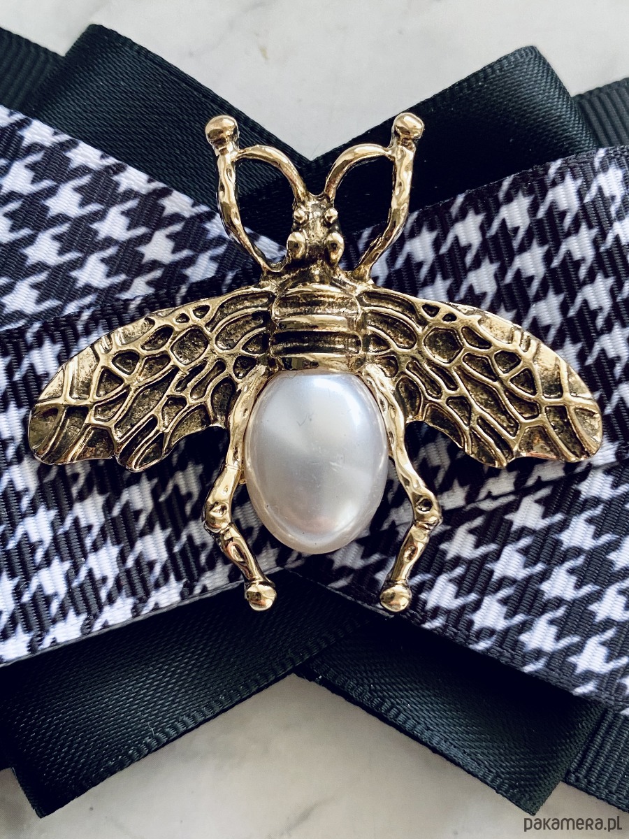 Piękna okazala ozdoba na środku, Owad wykonany z dużej perły w złotej oprawie.