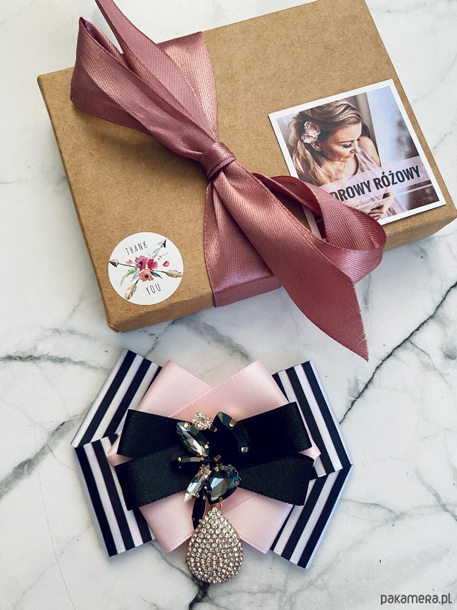 Broszka wykonana z wysokiej jakości taśm i dodatków.