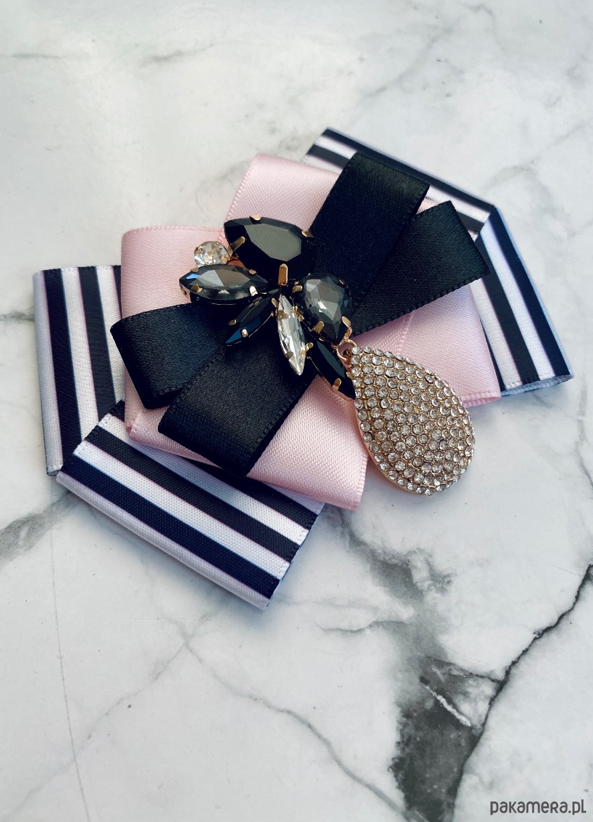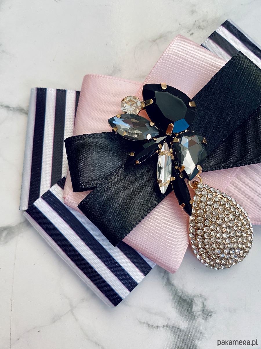 Broszka wykonana z wysokiej jakości taśm i dodatków.