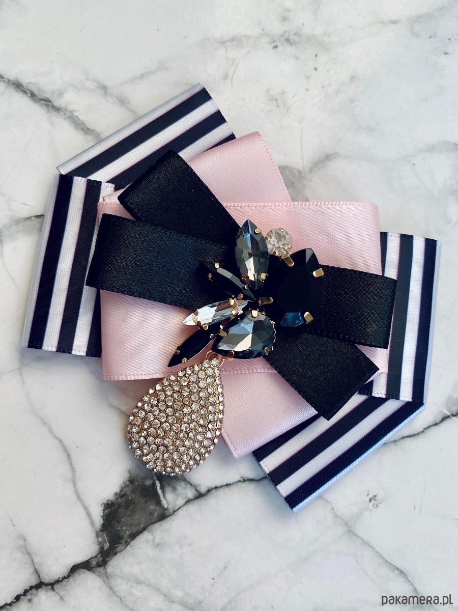 Broszka wykonana z wysokiej jakości taśm i dodatków.