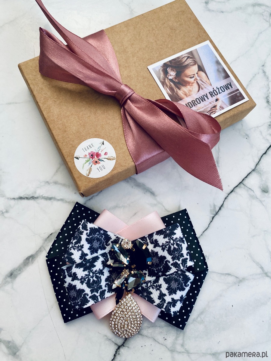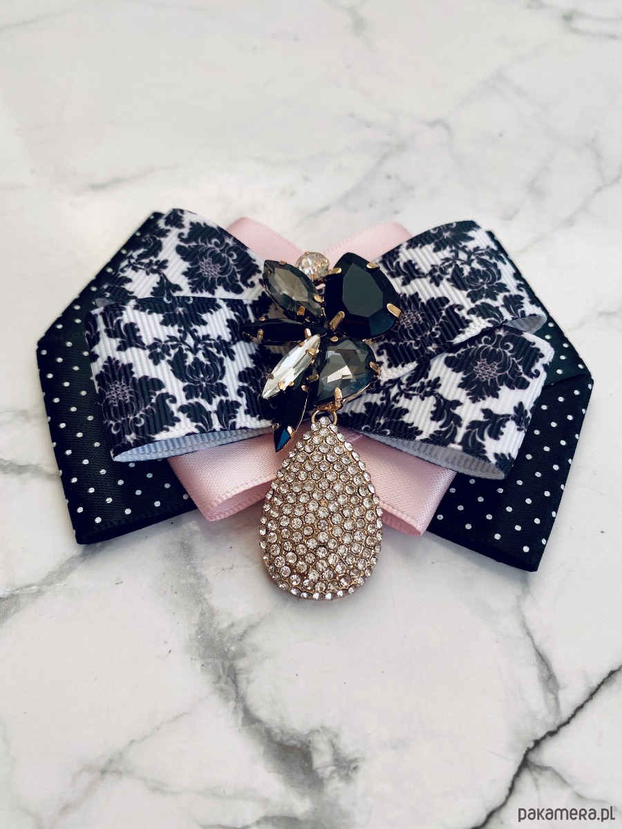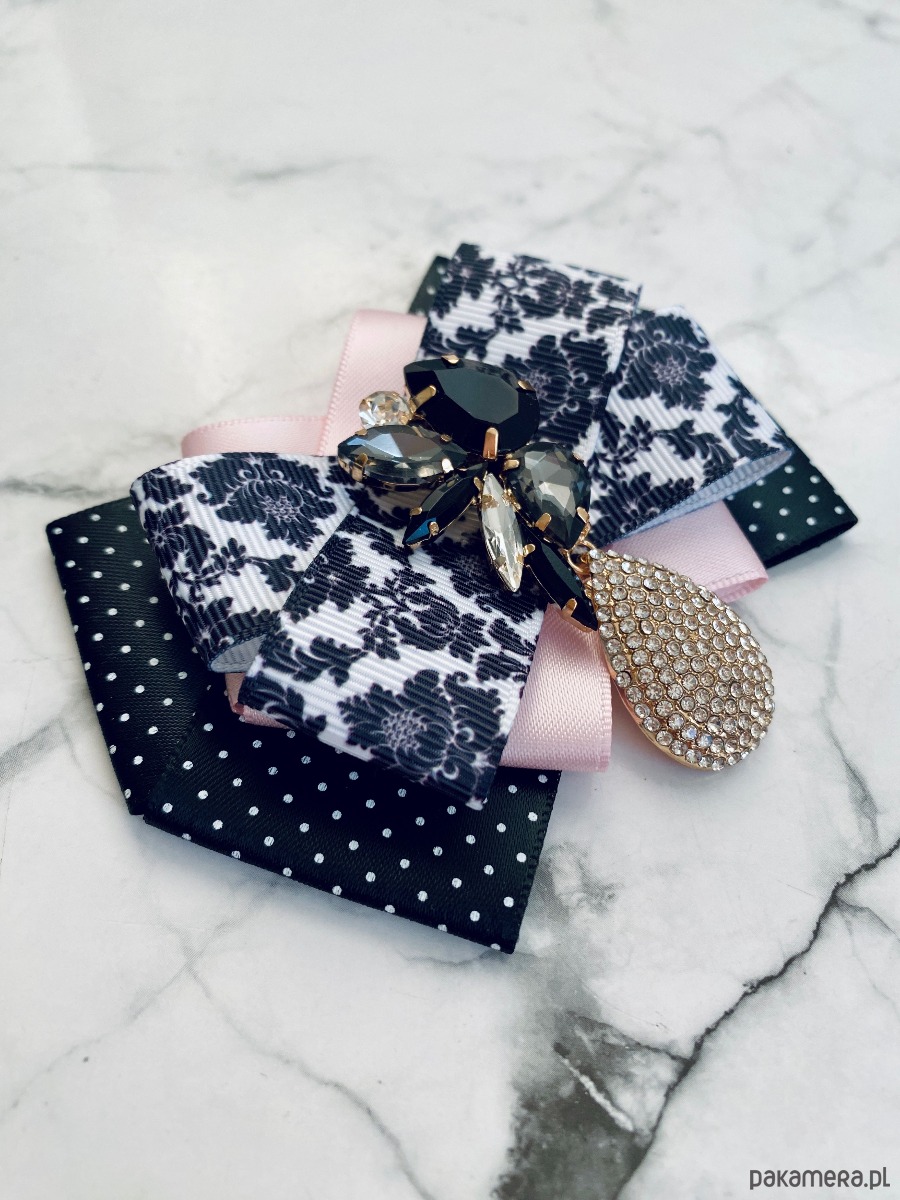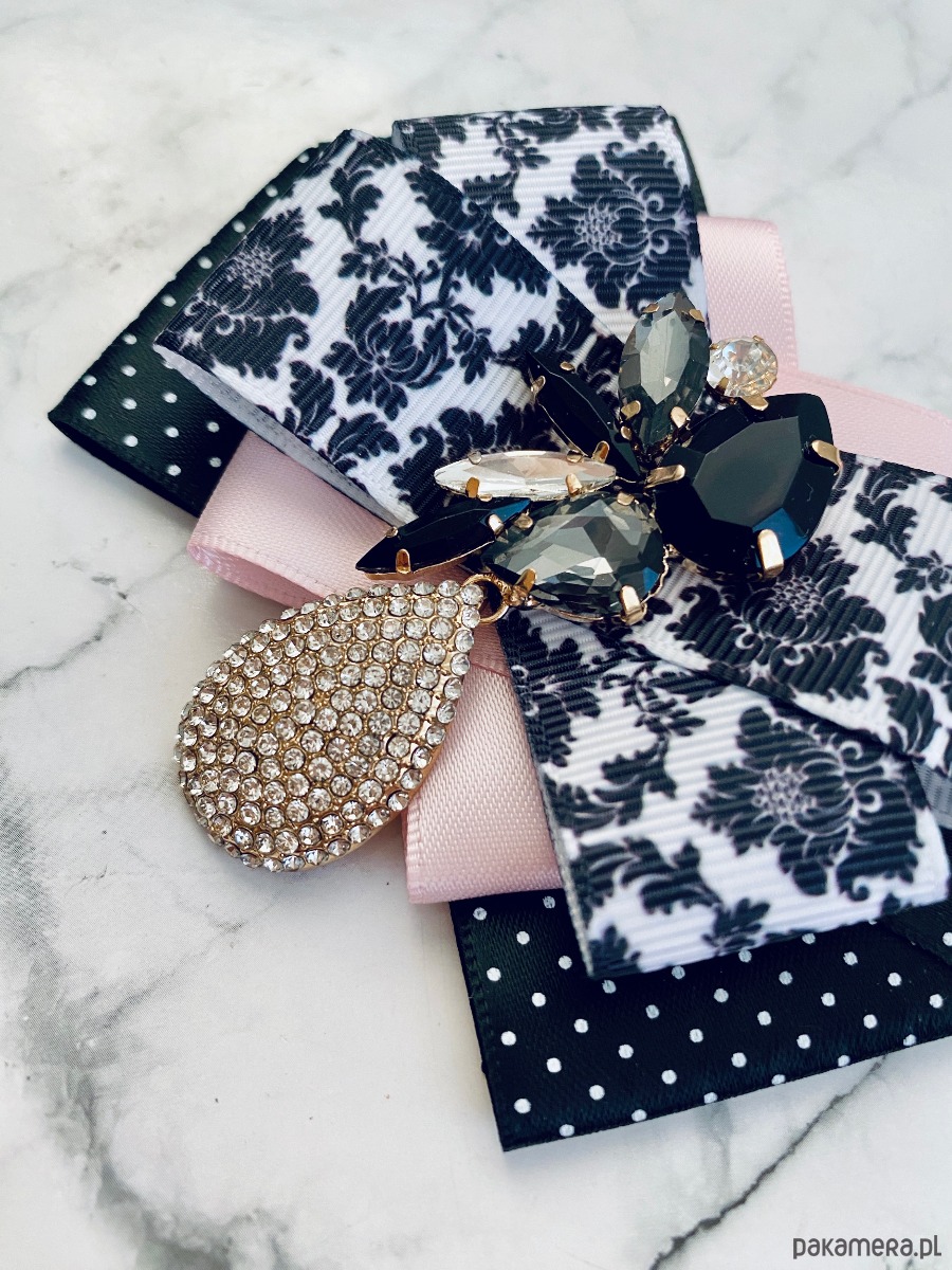 Broszka wykonana z wysokiej jakości taśm i dodatków.