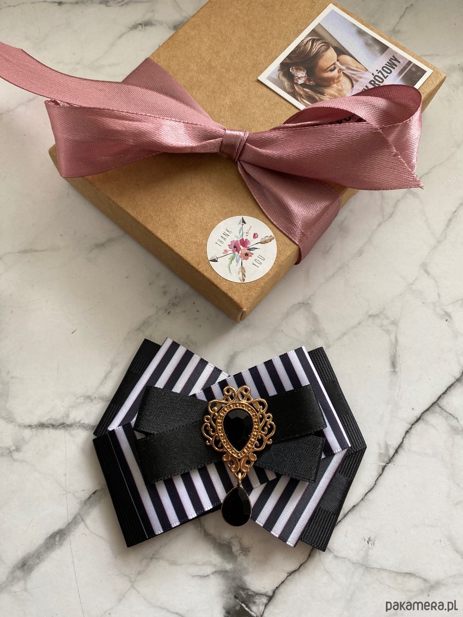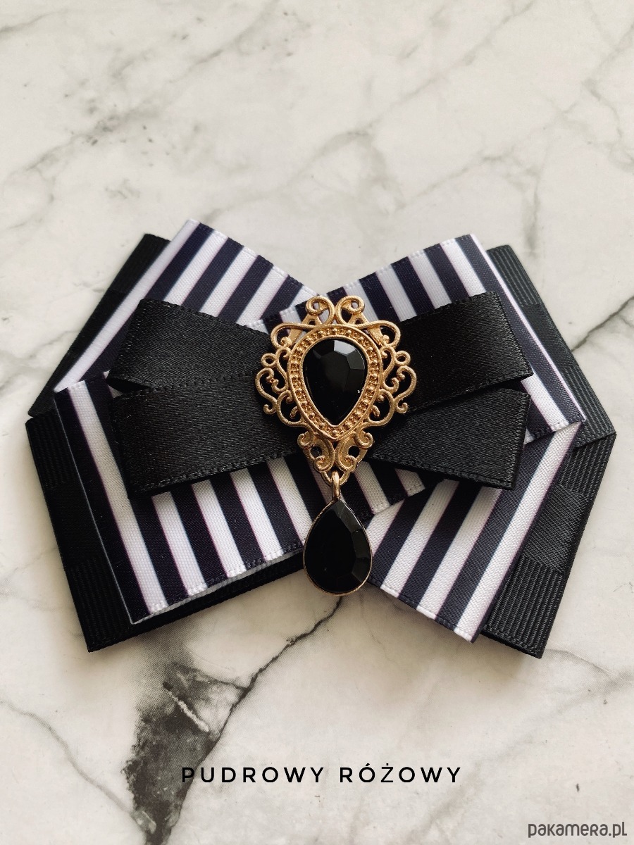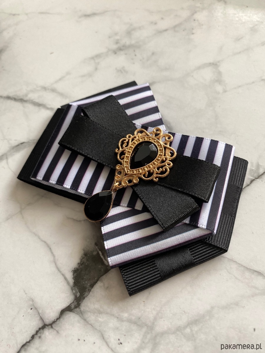 Broszka wykonana z wysokiej jakości taśm i dodatków.