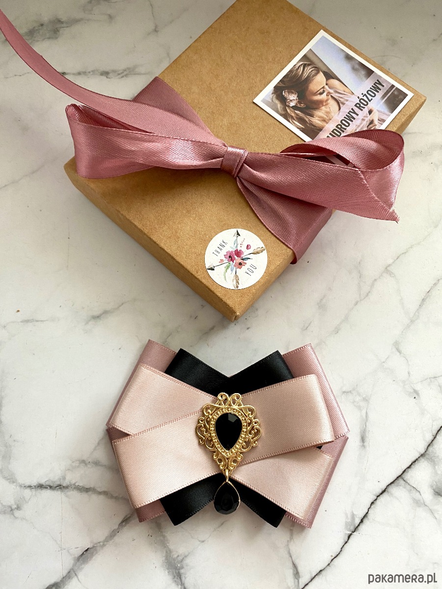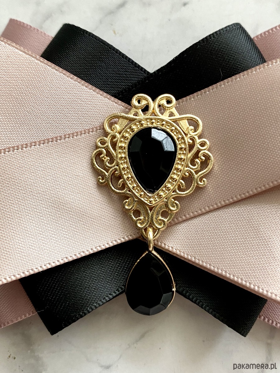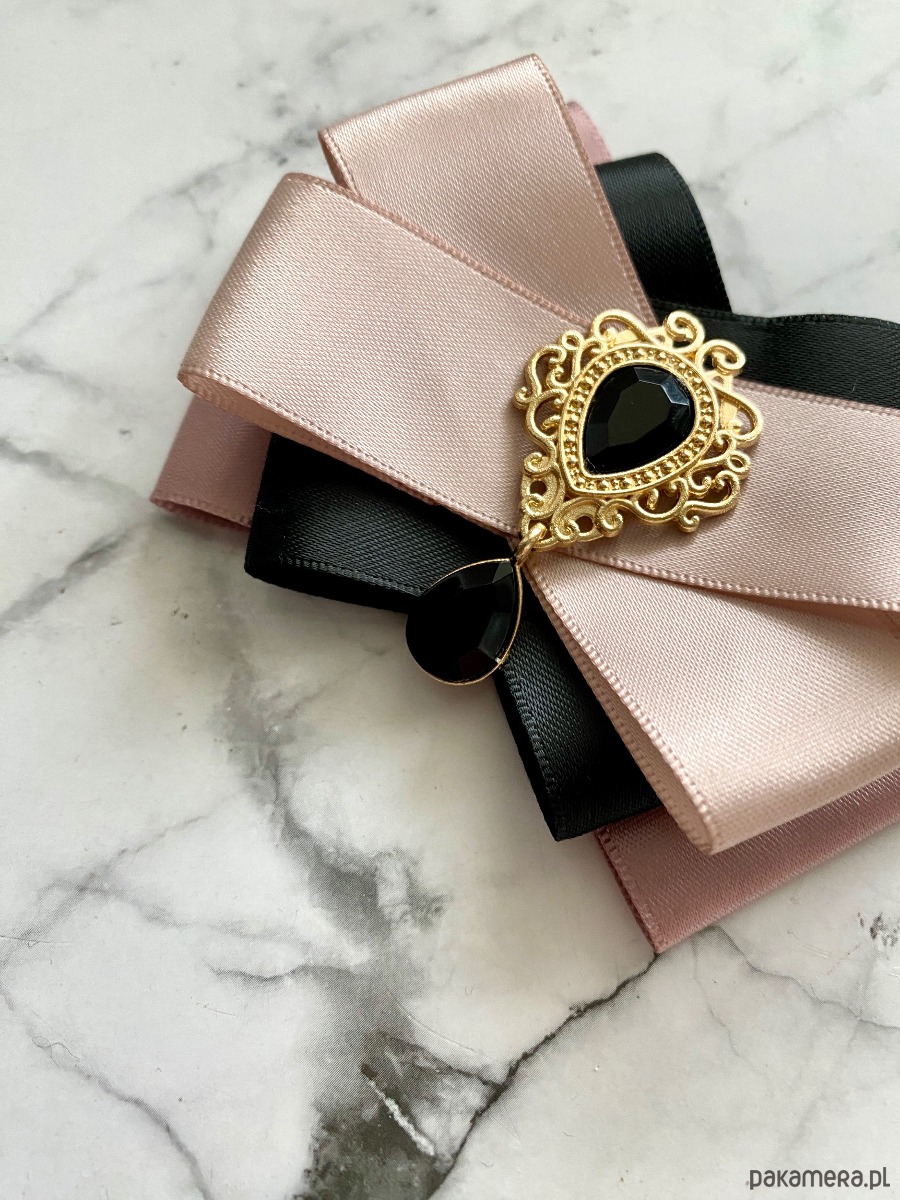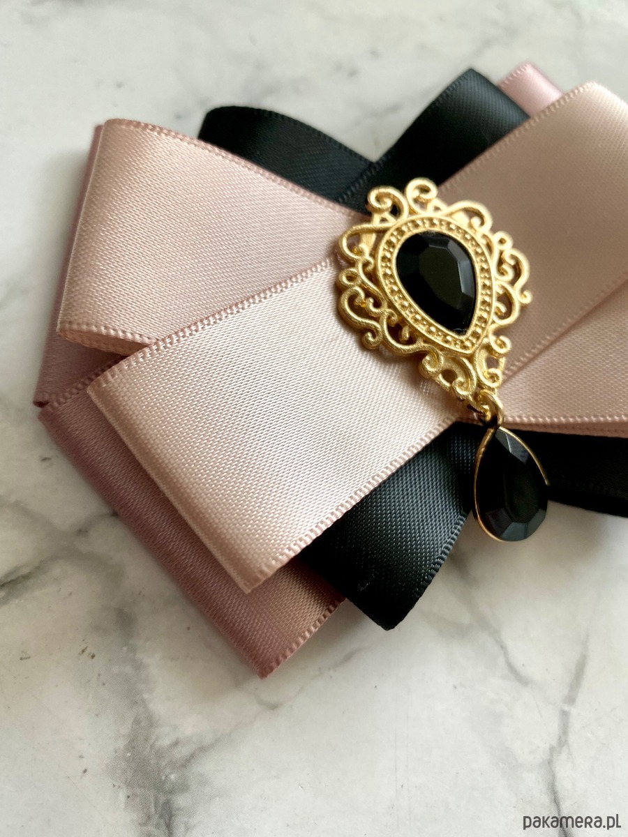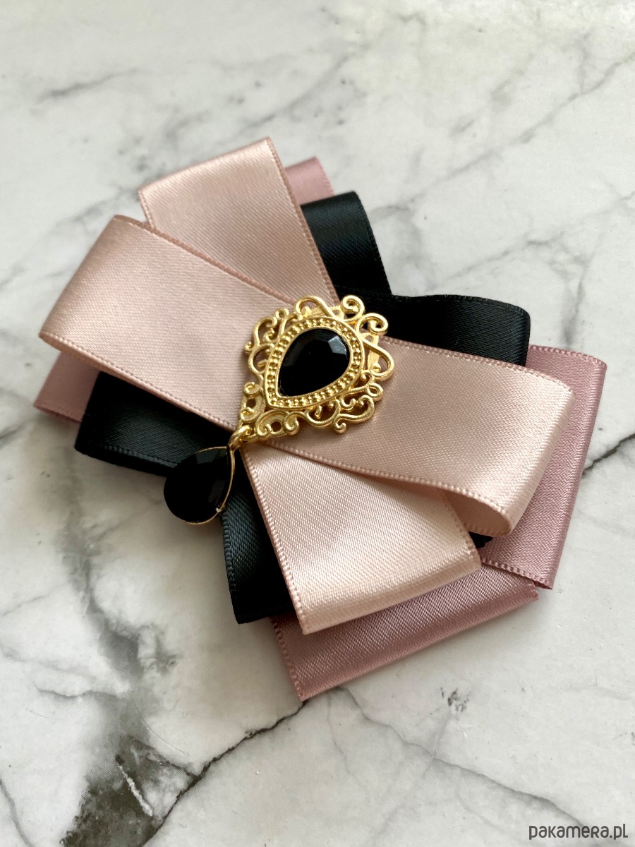Broszka wykonana z wysokiej jakości taśm i dodatków.