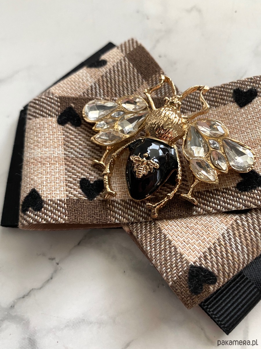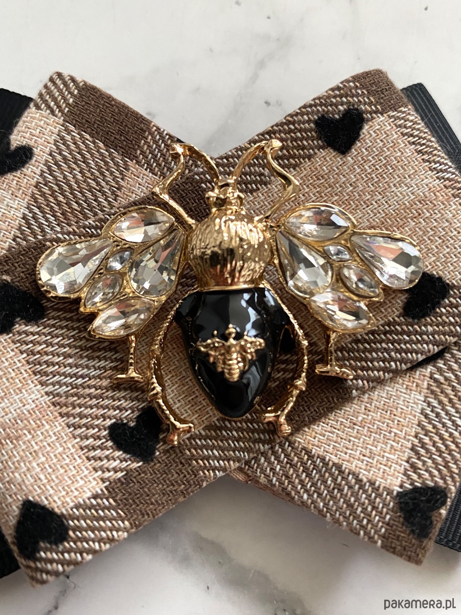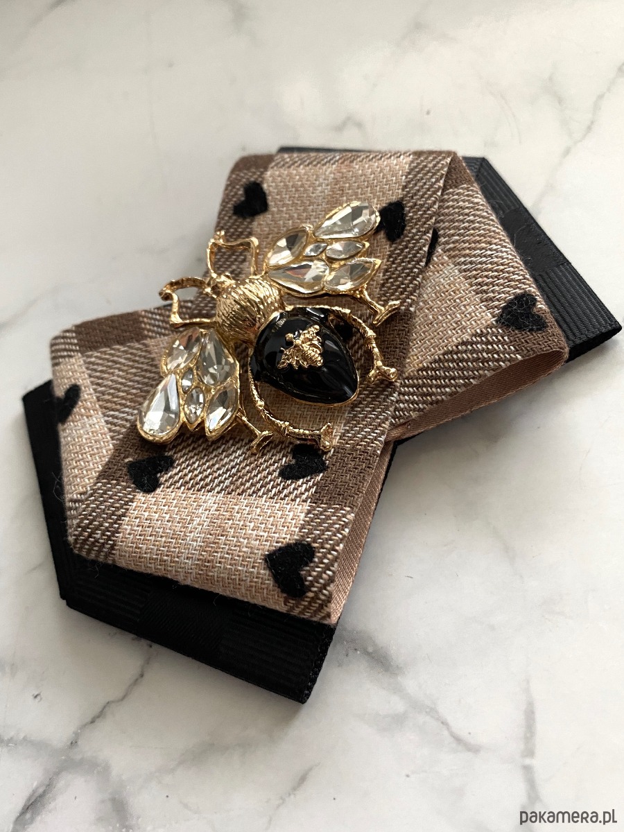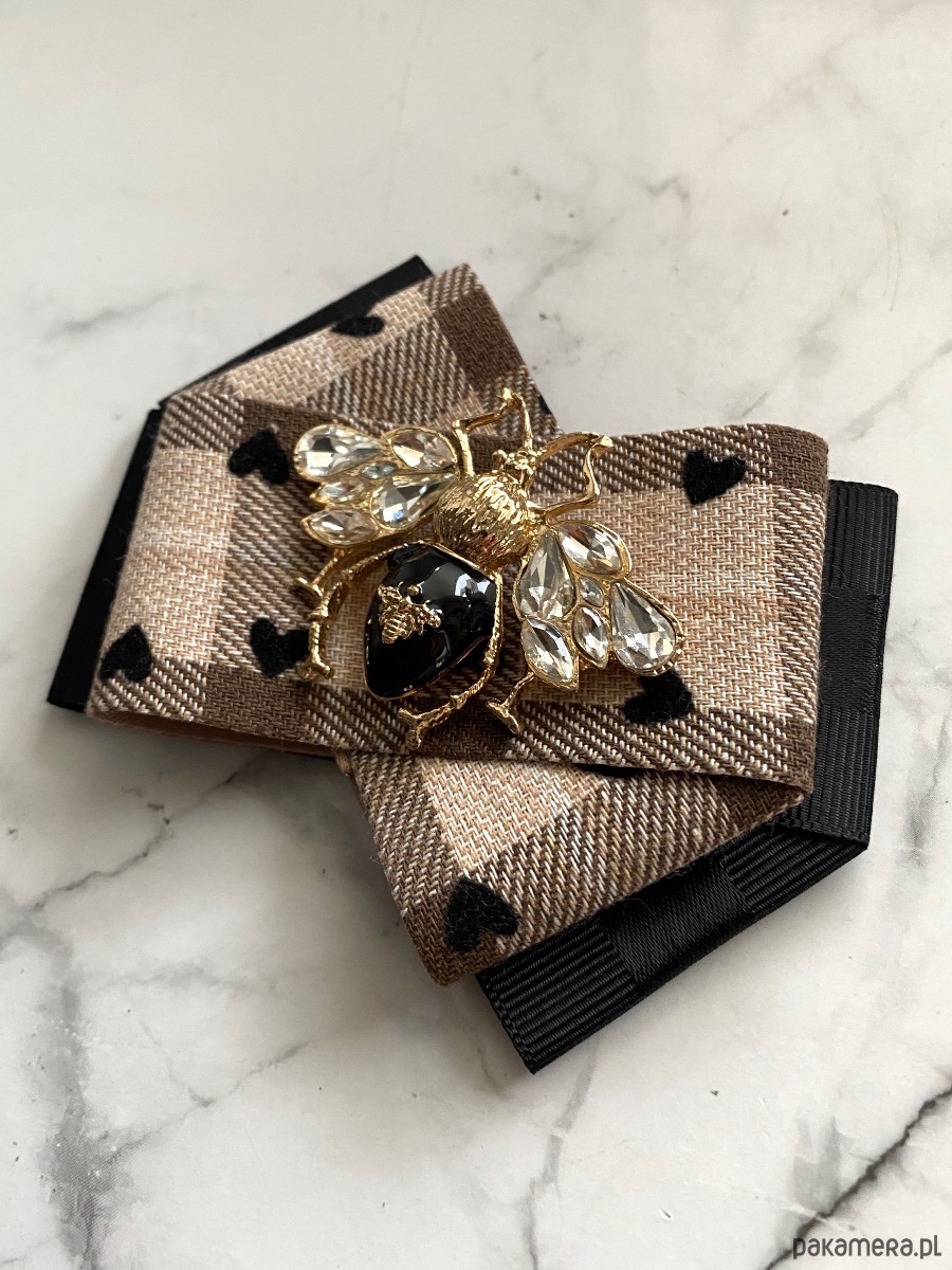 Broszka wykonana z wysokiej jakości taśm i dodatków.
