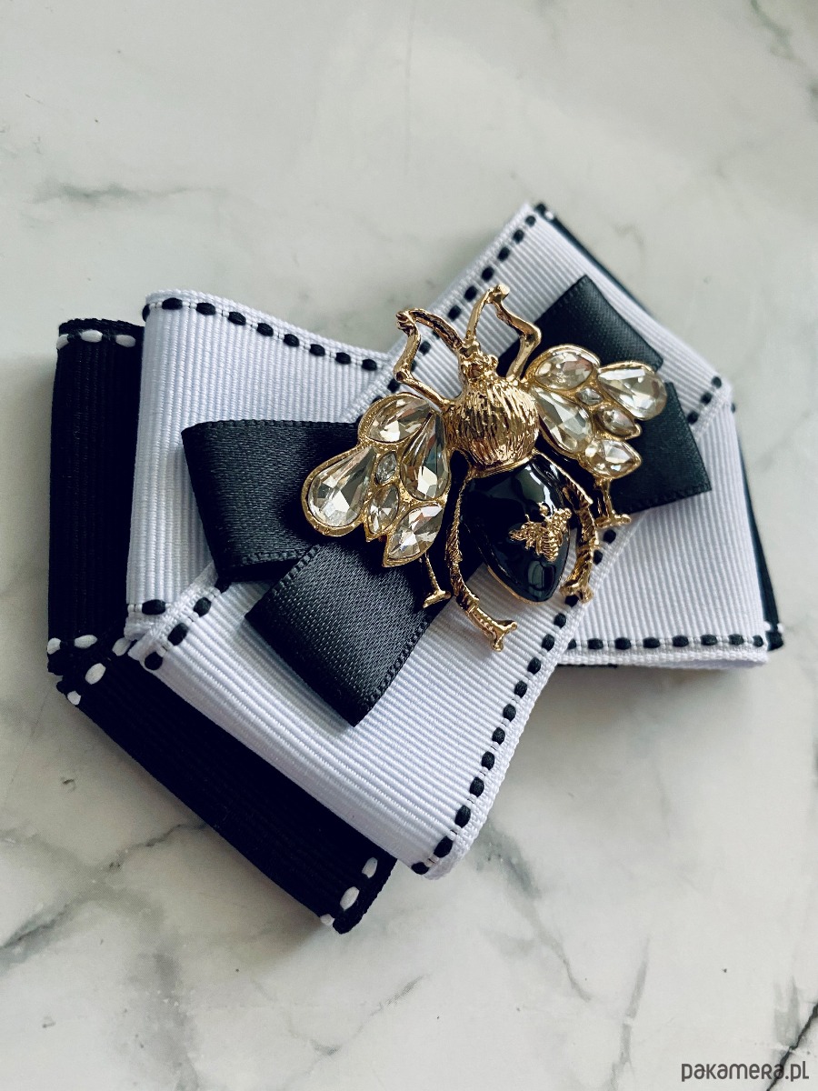Broszka wykonana z wysokiej jakości taśm i dodatków.