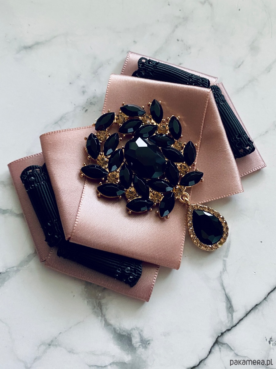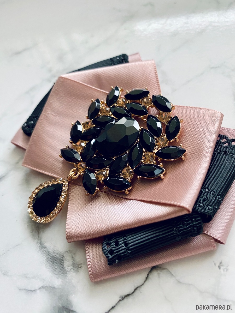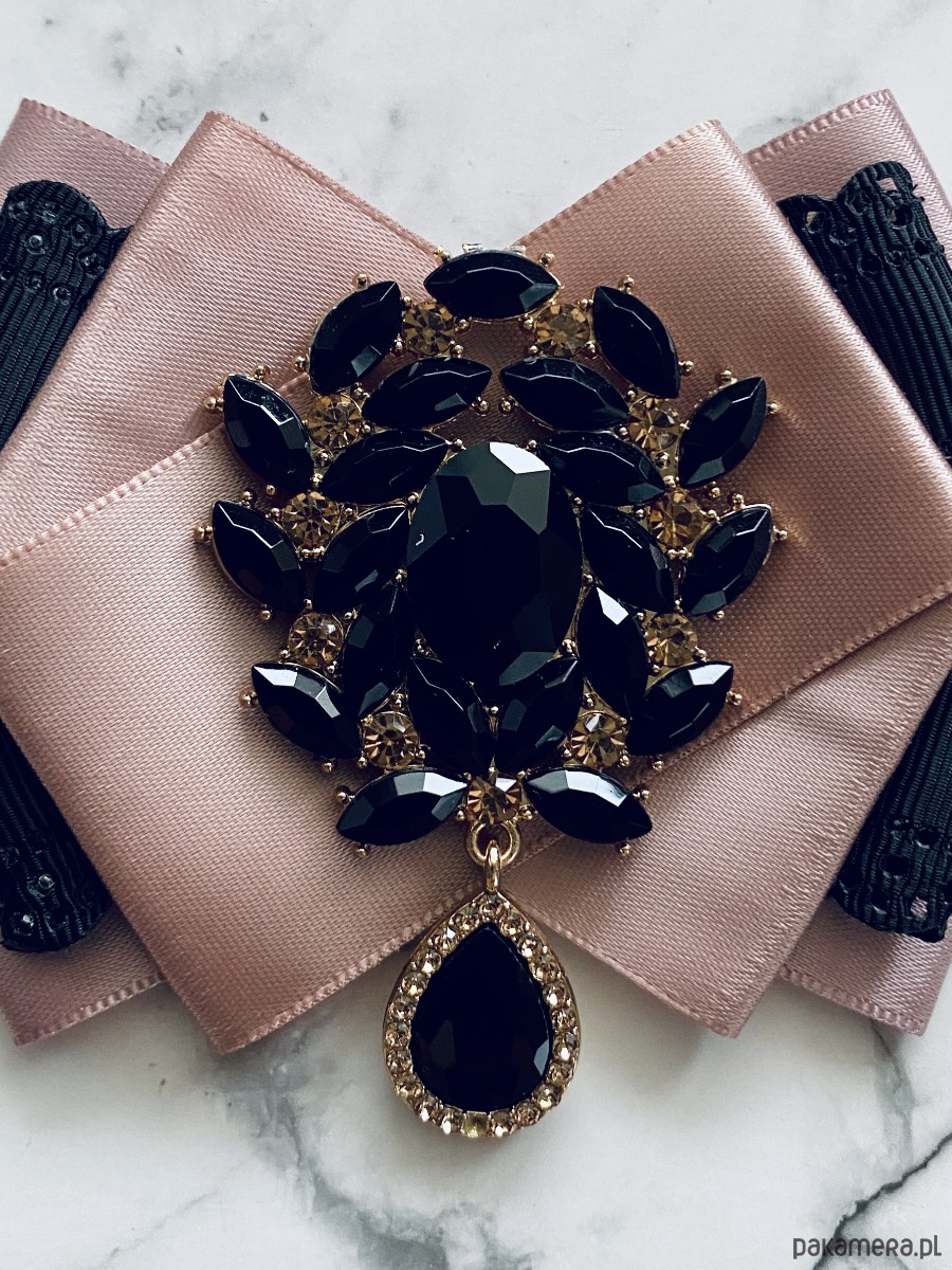 Brosza z czarnymi kryształami w stylu glamour
