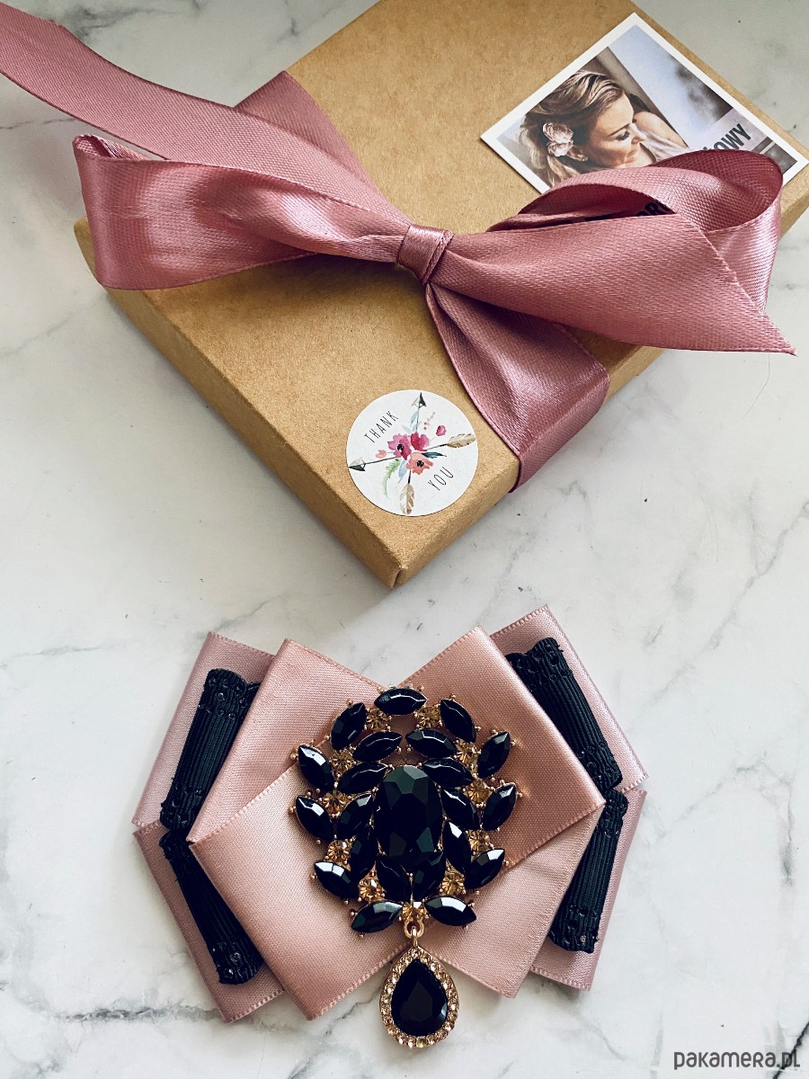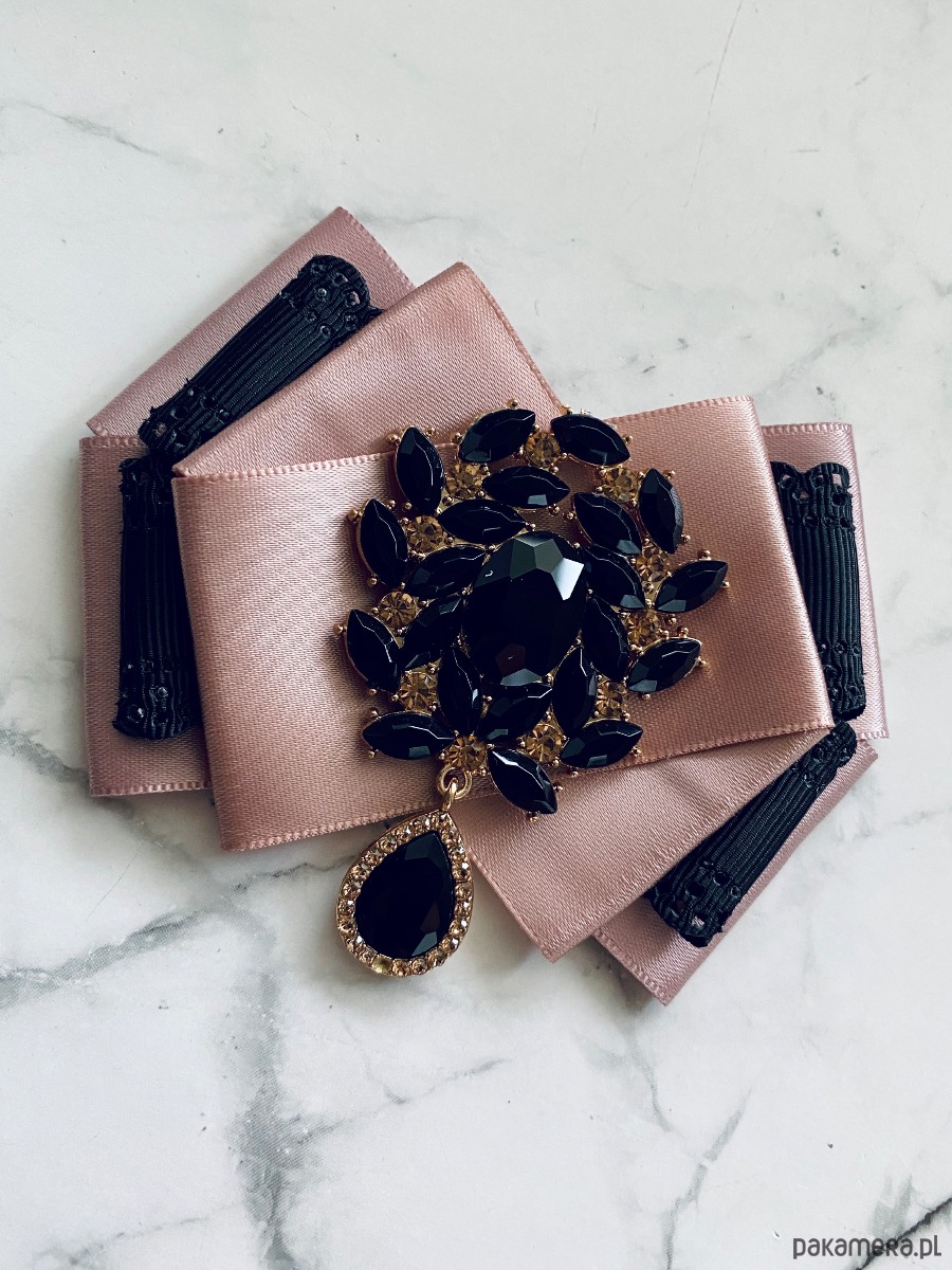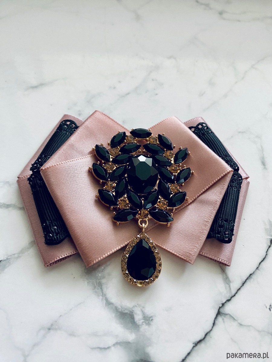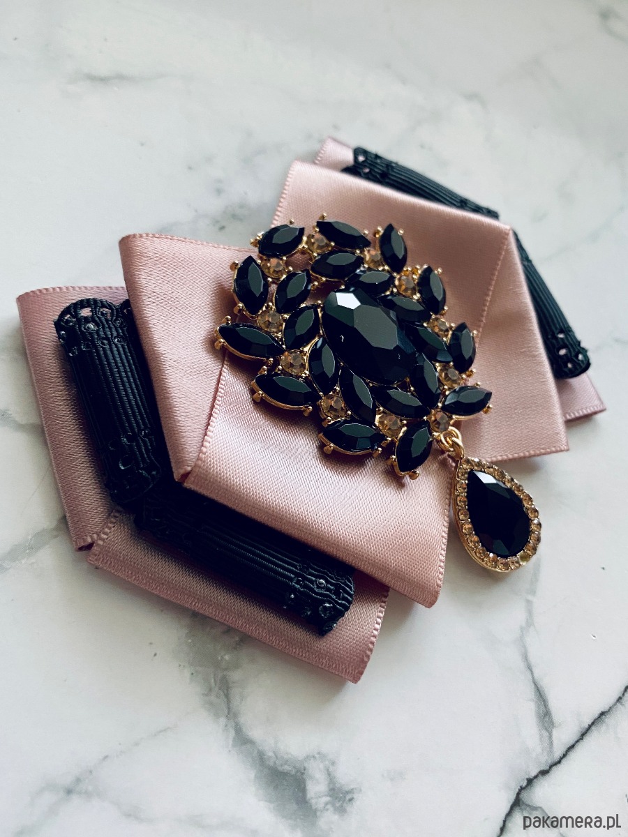 Broszka wykonana z wysokiej jakości taśm i dodatków.