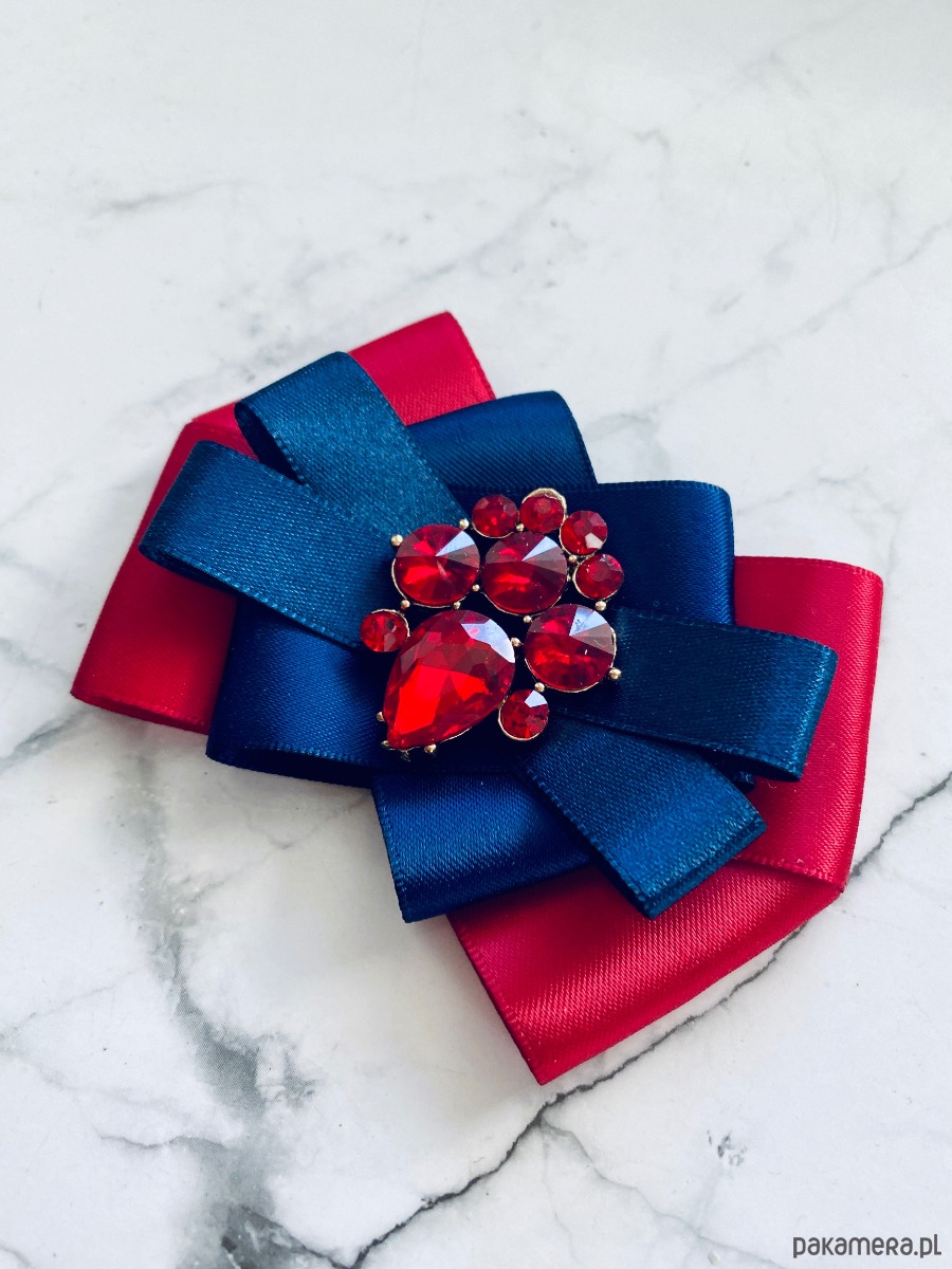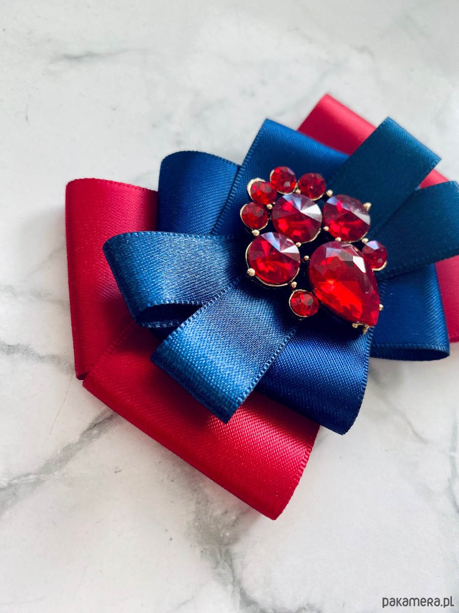 Broszka wykonana z wysokiej jakości taśm i dodatków.
