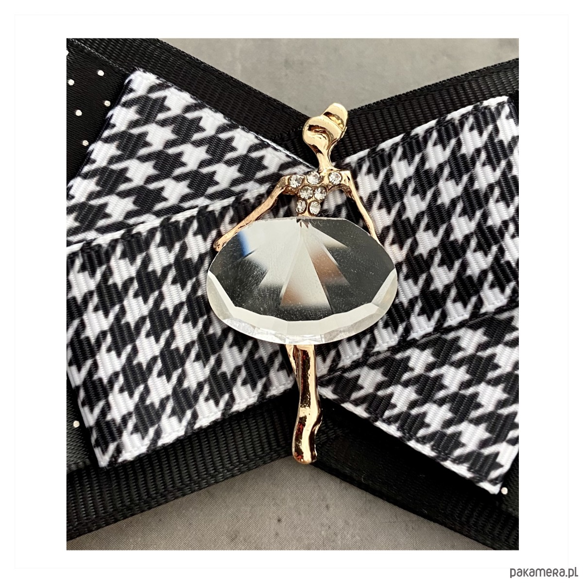 Brosza w kolorze czerni i bieli.