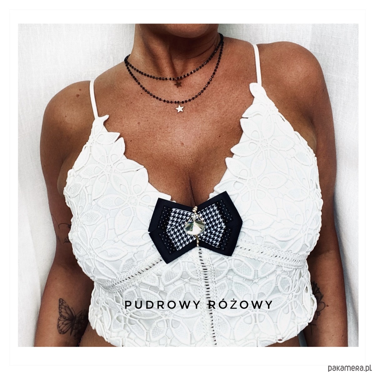 Na środku naszyta cudowna ozdoba biżuteryjna Dama w stylu Francuskim z cyrkoniami i pięknym kryształem.