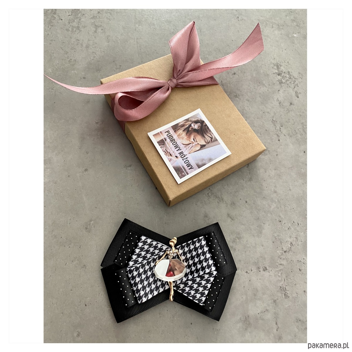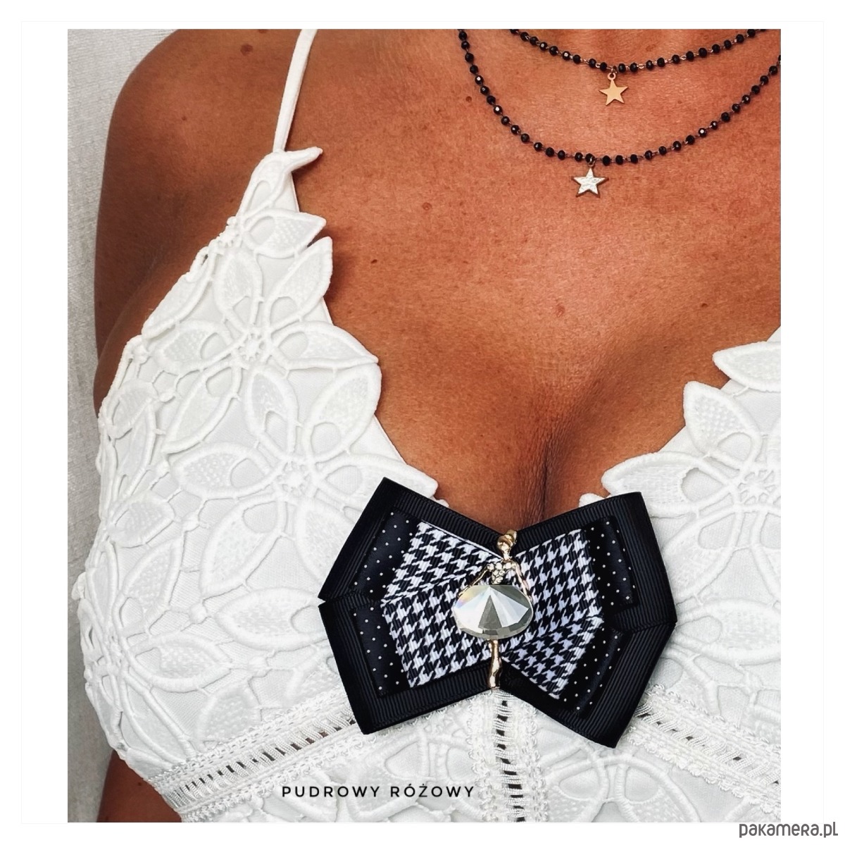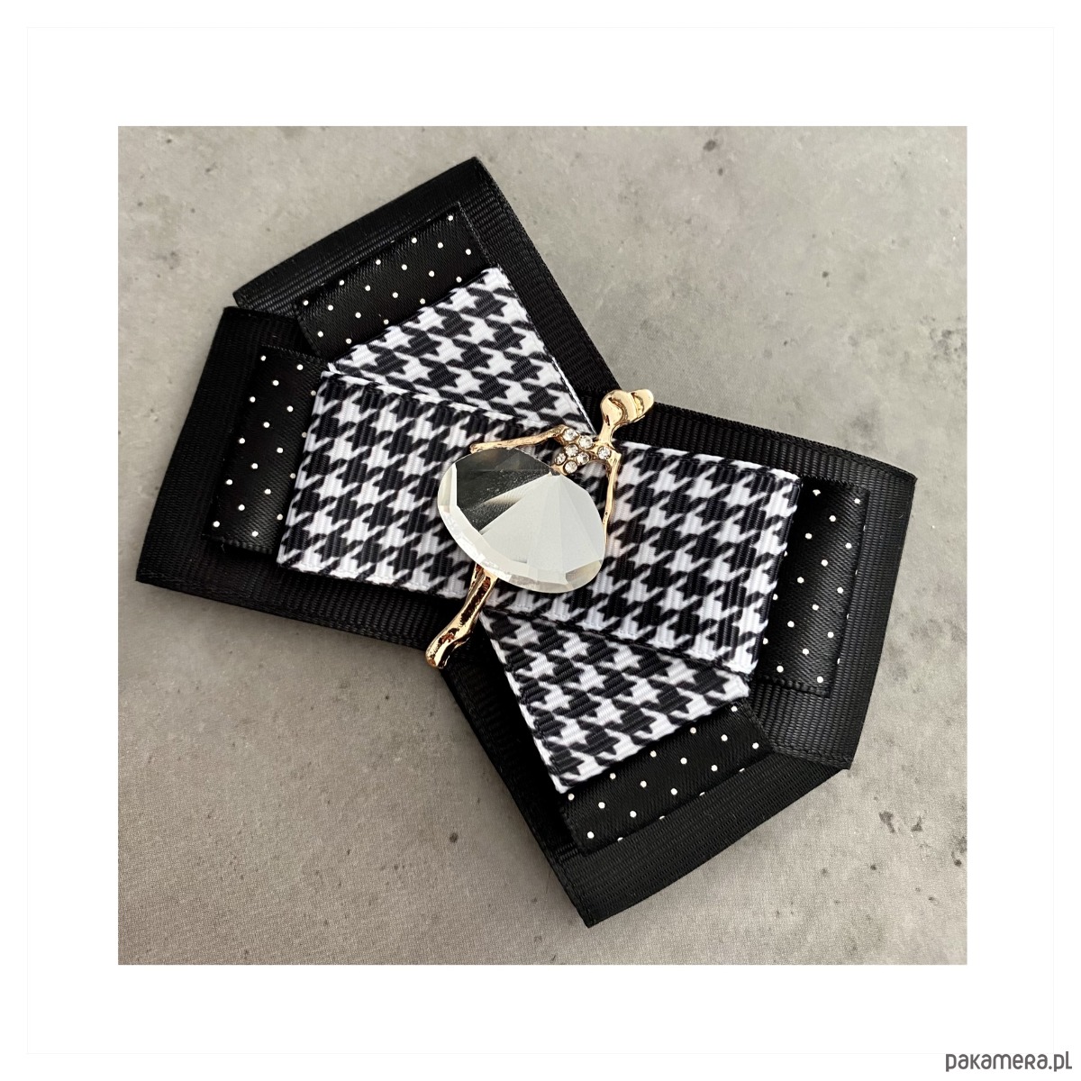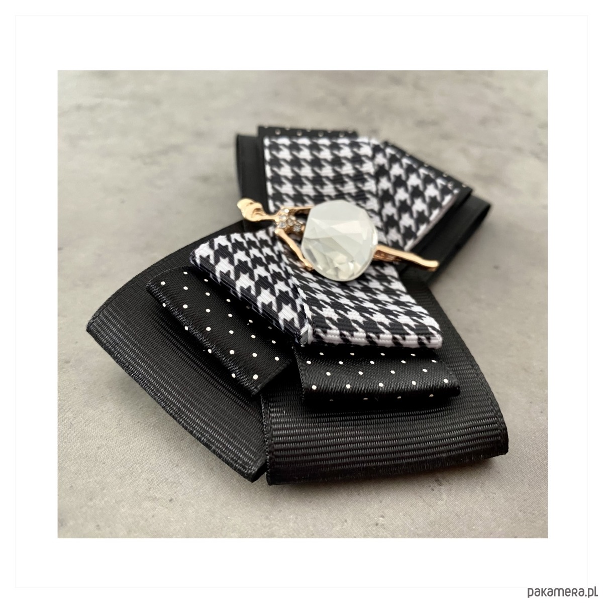 Broszka wykonana z wysokiej jakości taśm i dodatków.