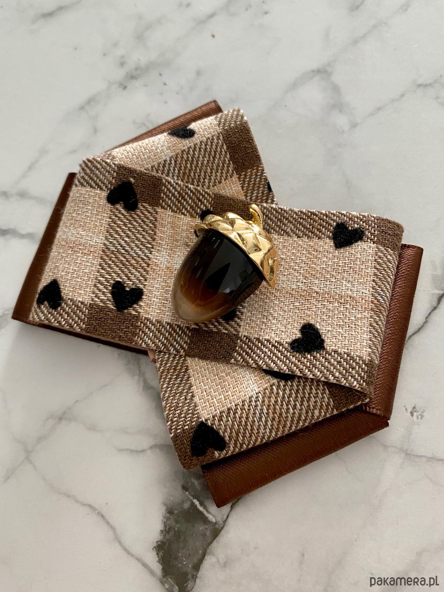 Broszka wykonana z wysokiej jakości taśm i dodatków.