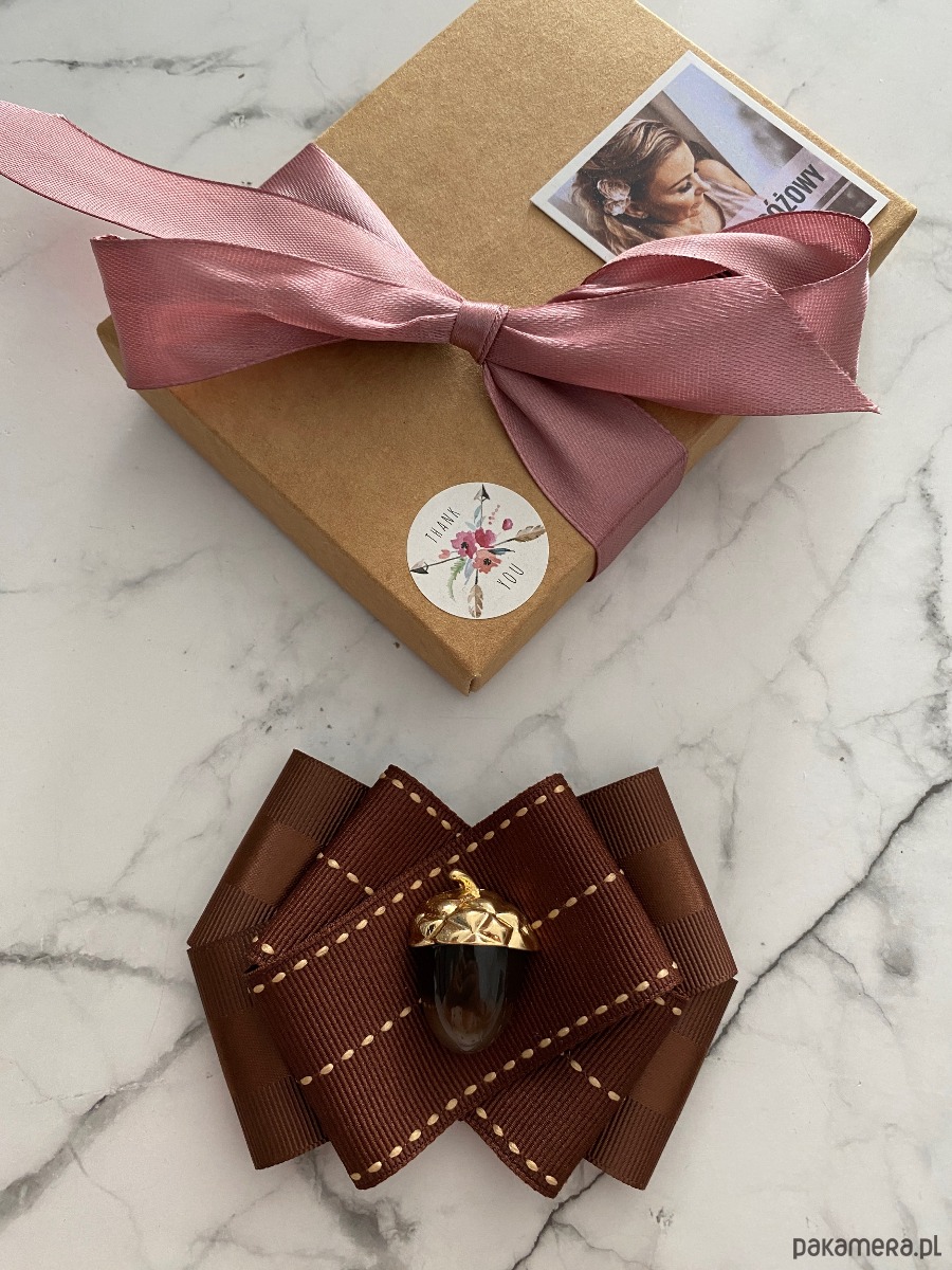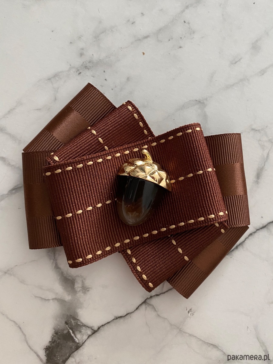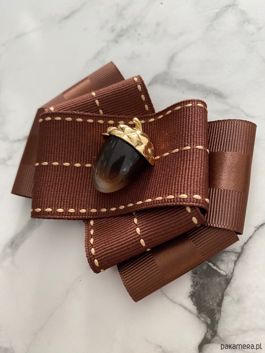 Broszka wykonana z wysokiej jakości taśm i dodatków.