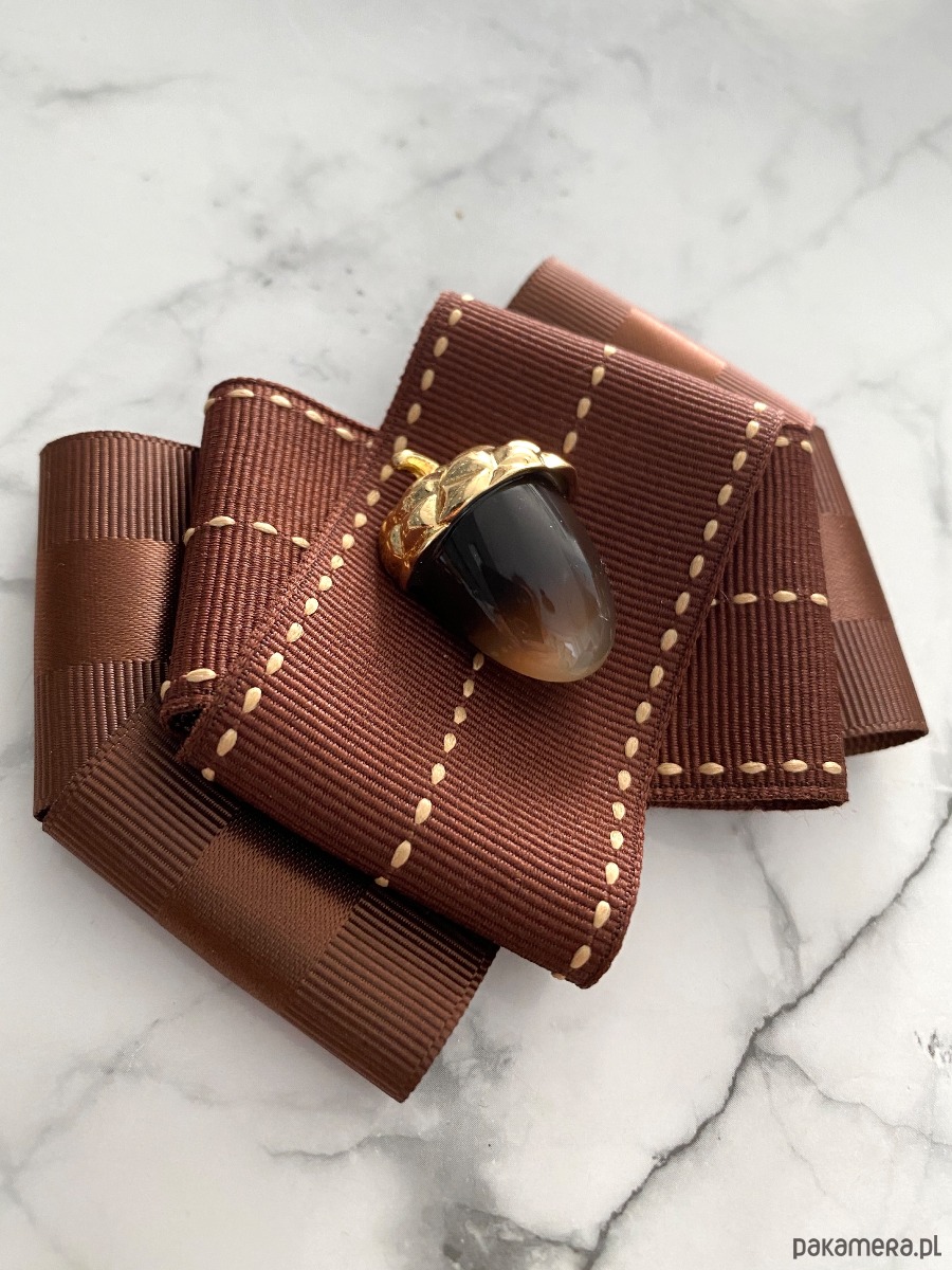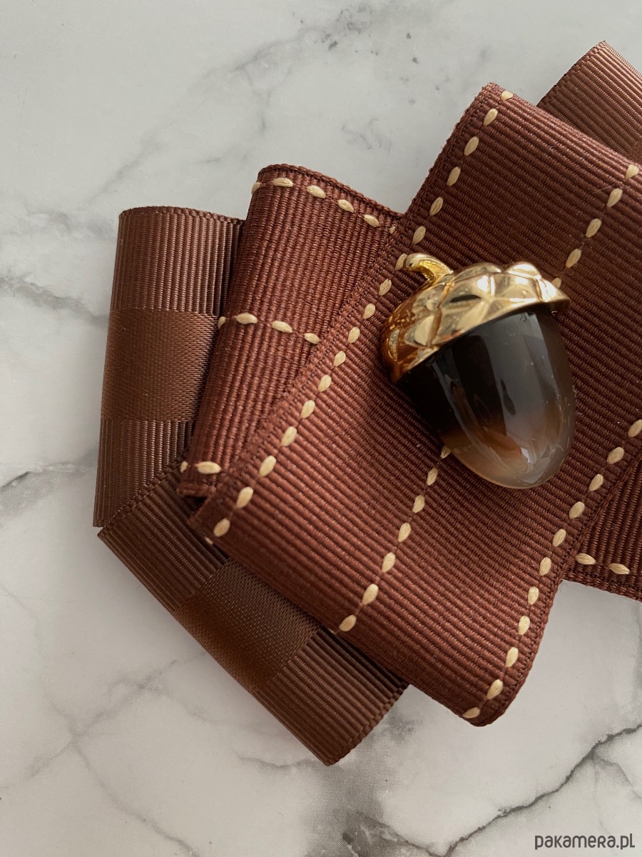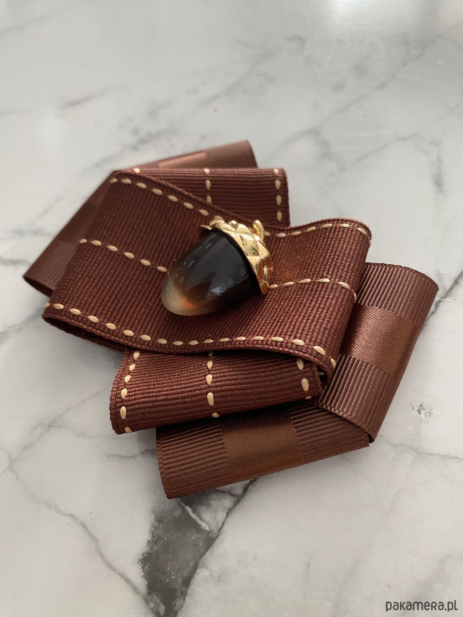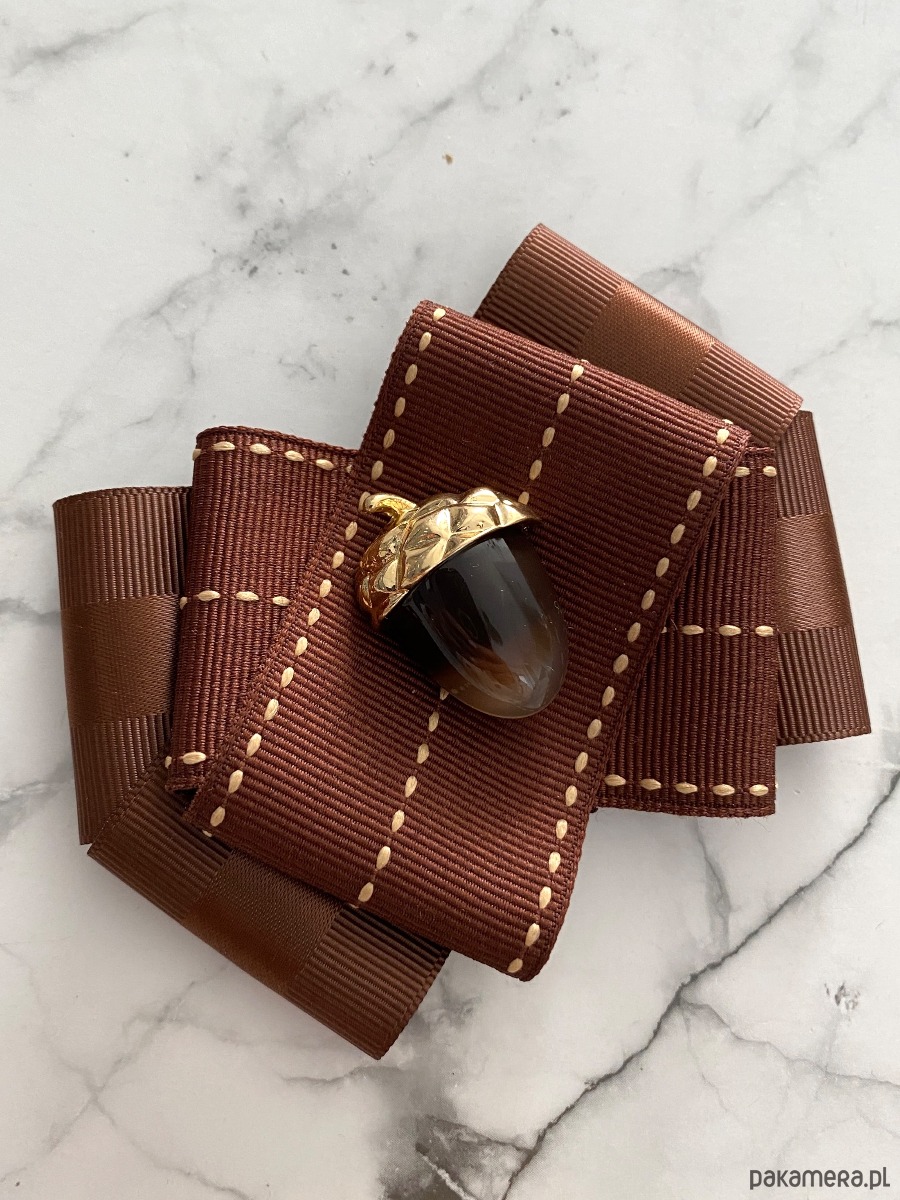 Broszka wykonana z wysokiej jakości taśm i dodatków.