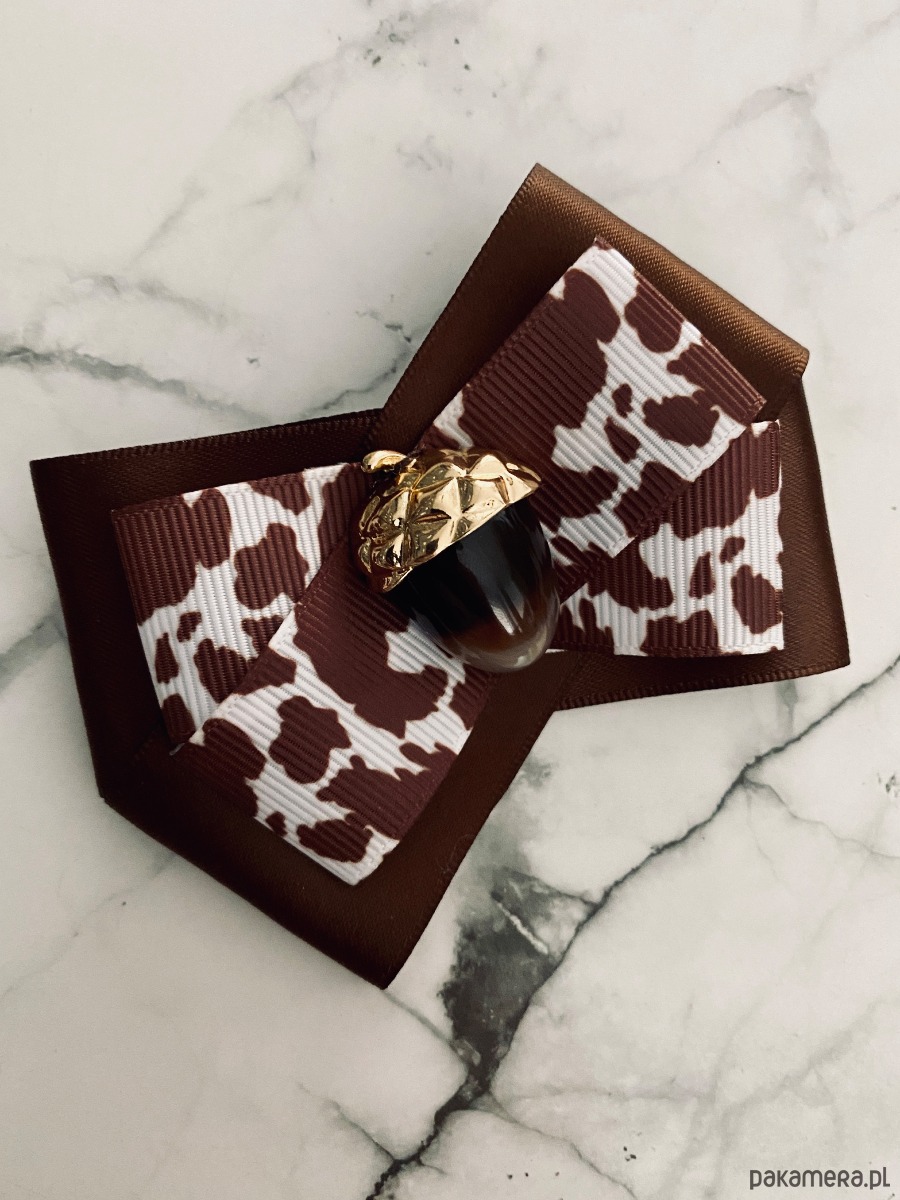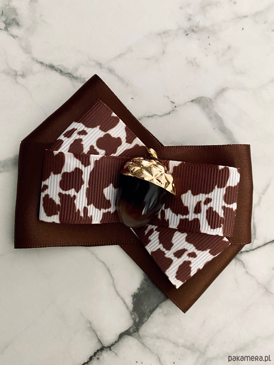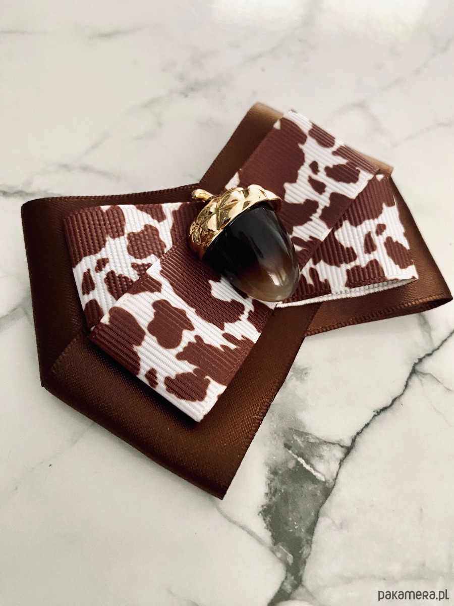 Broszka wykonana z wysokiej jakości taśm i dodatków.