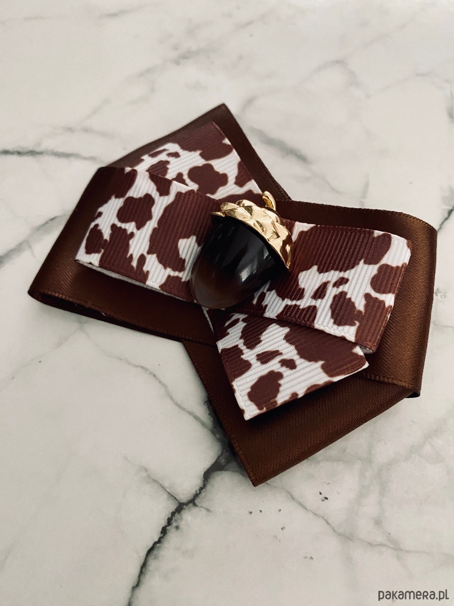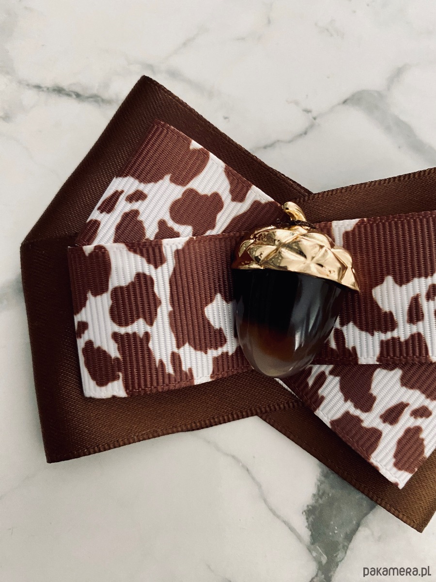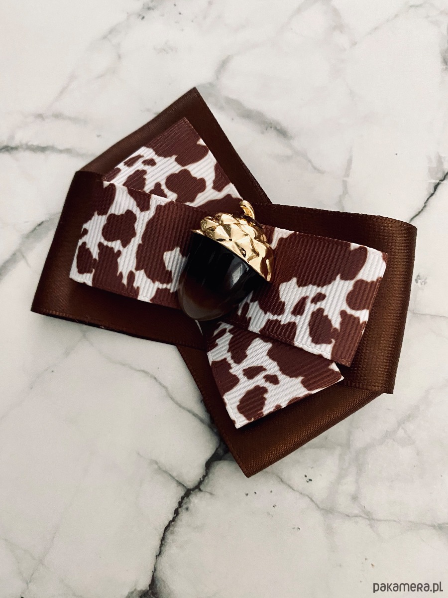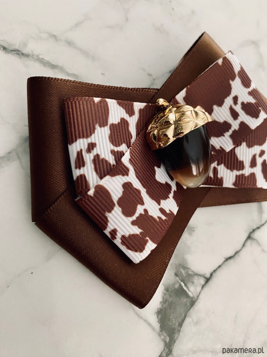 Broszka wykonana z wysokiej jakości taśm i dodatków.