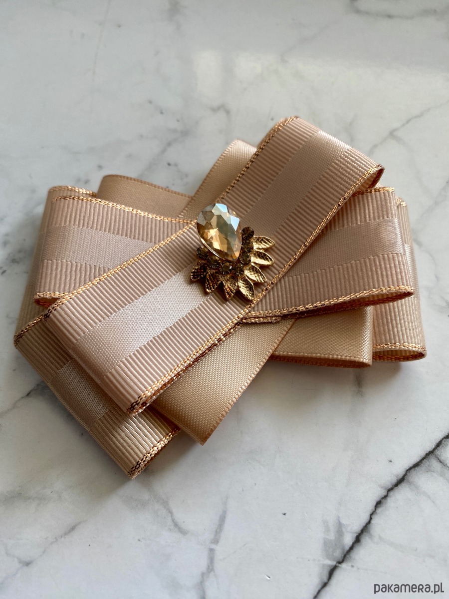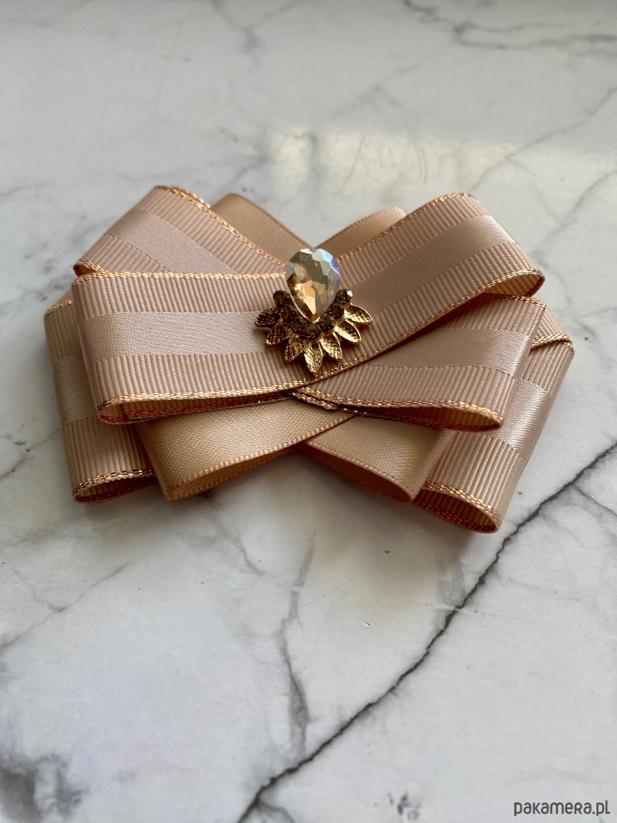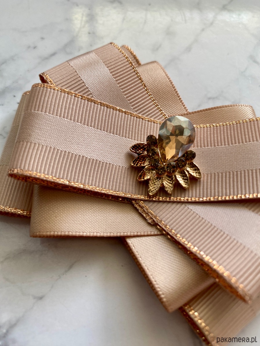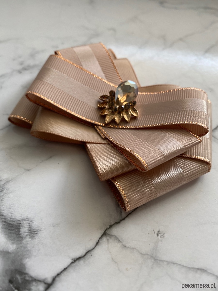 Broszka wykonana z wysokiej jakości taśm i dodatków.