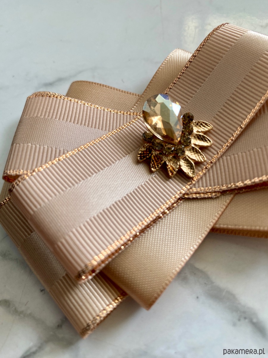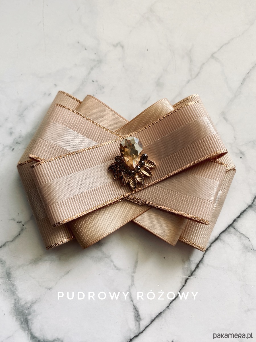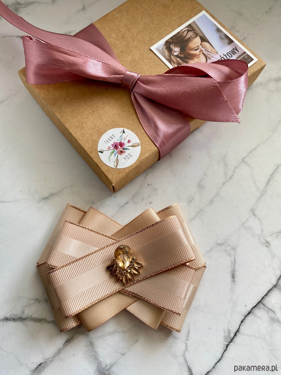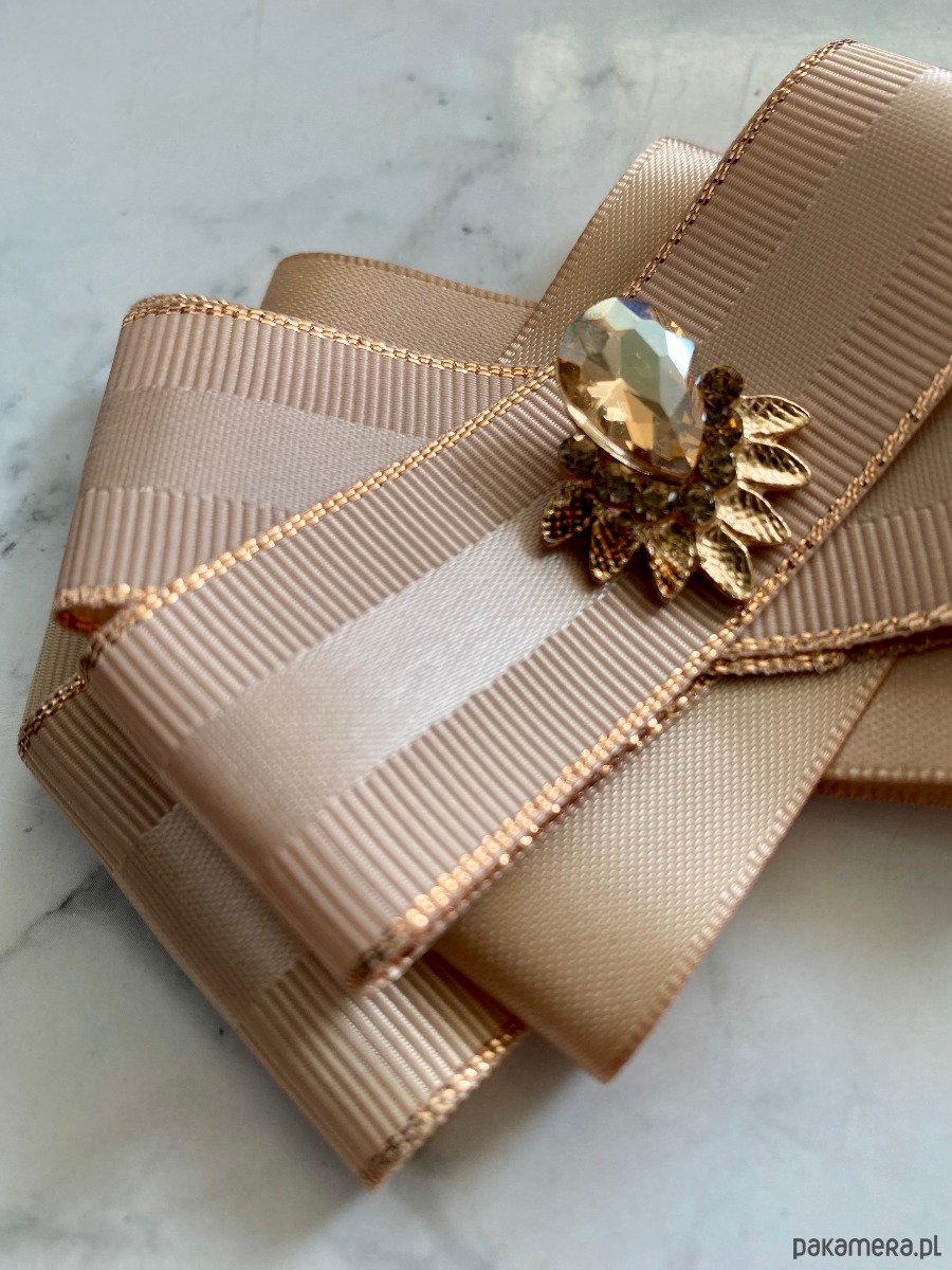 Broszka wykonana z wysokiej jakości taśm i dodatków.