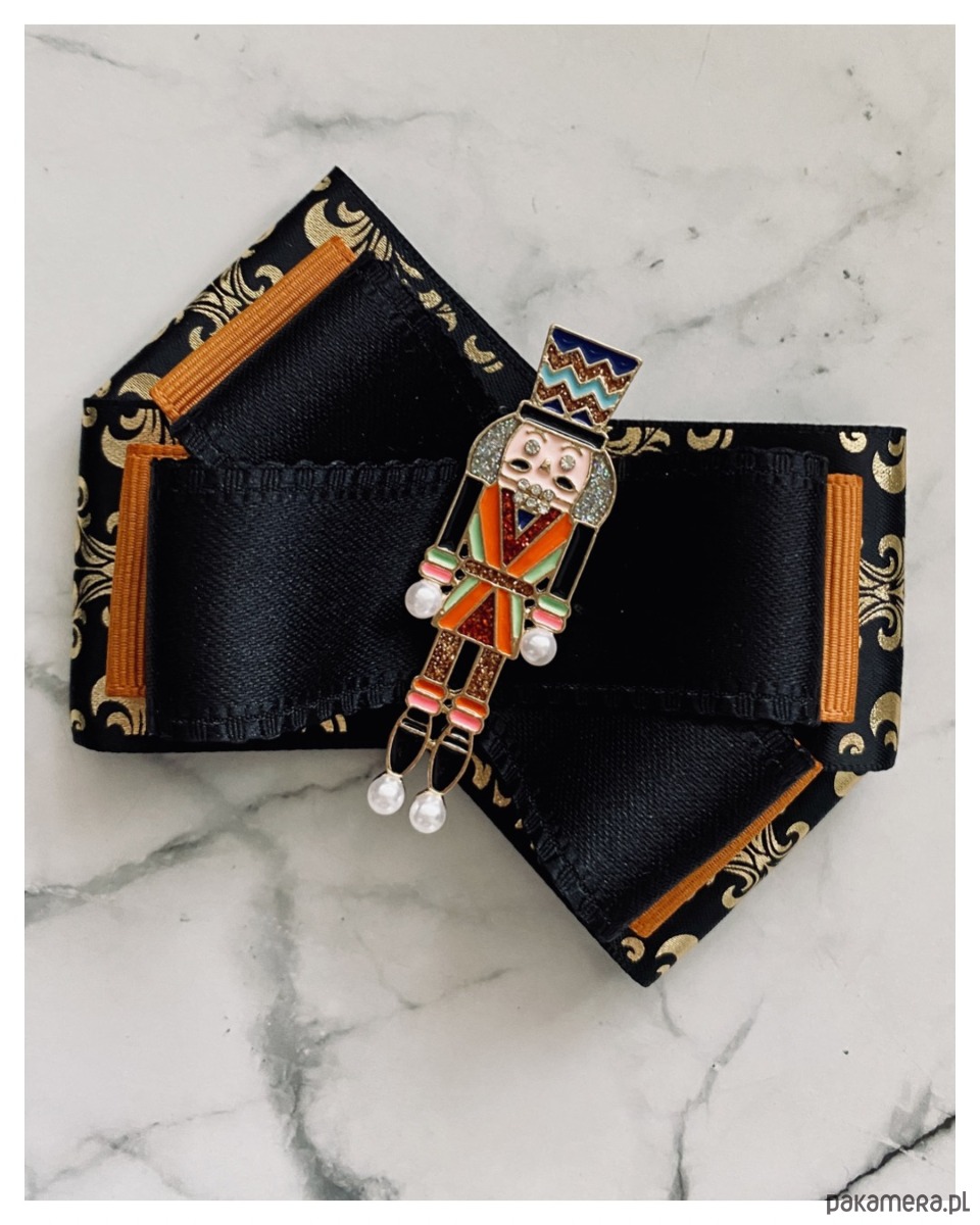 Broszka wykonana z wysokiej jakości taśm i dodatków.