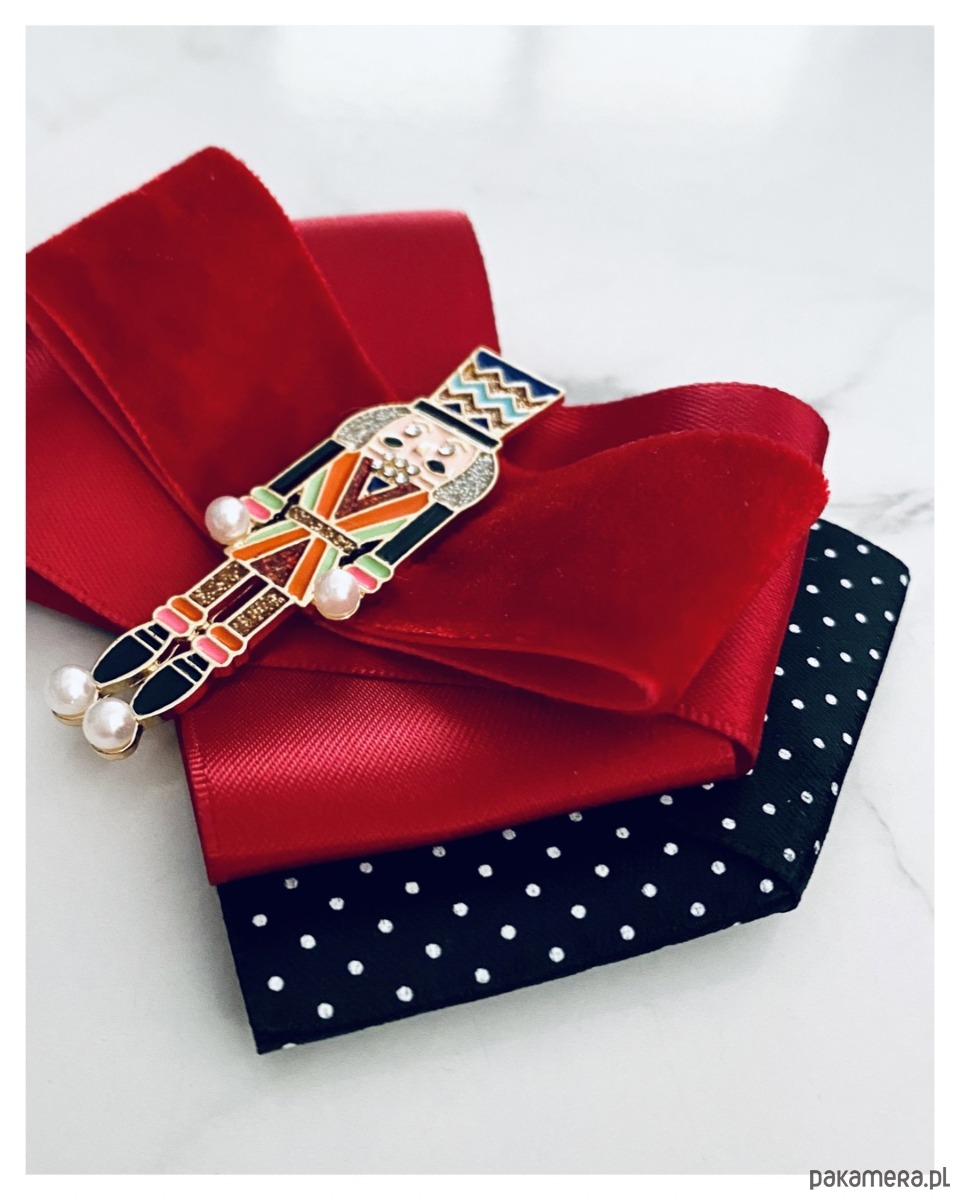 Broszka wykonana z wysokiej jakości taśm i dodatków.