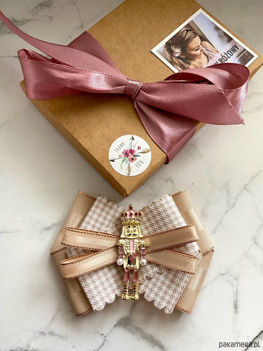 Broszka wykonana z wysokiej jakości taśm i dodatków.