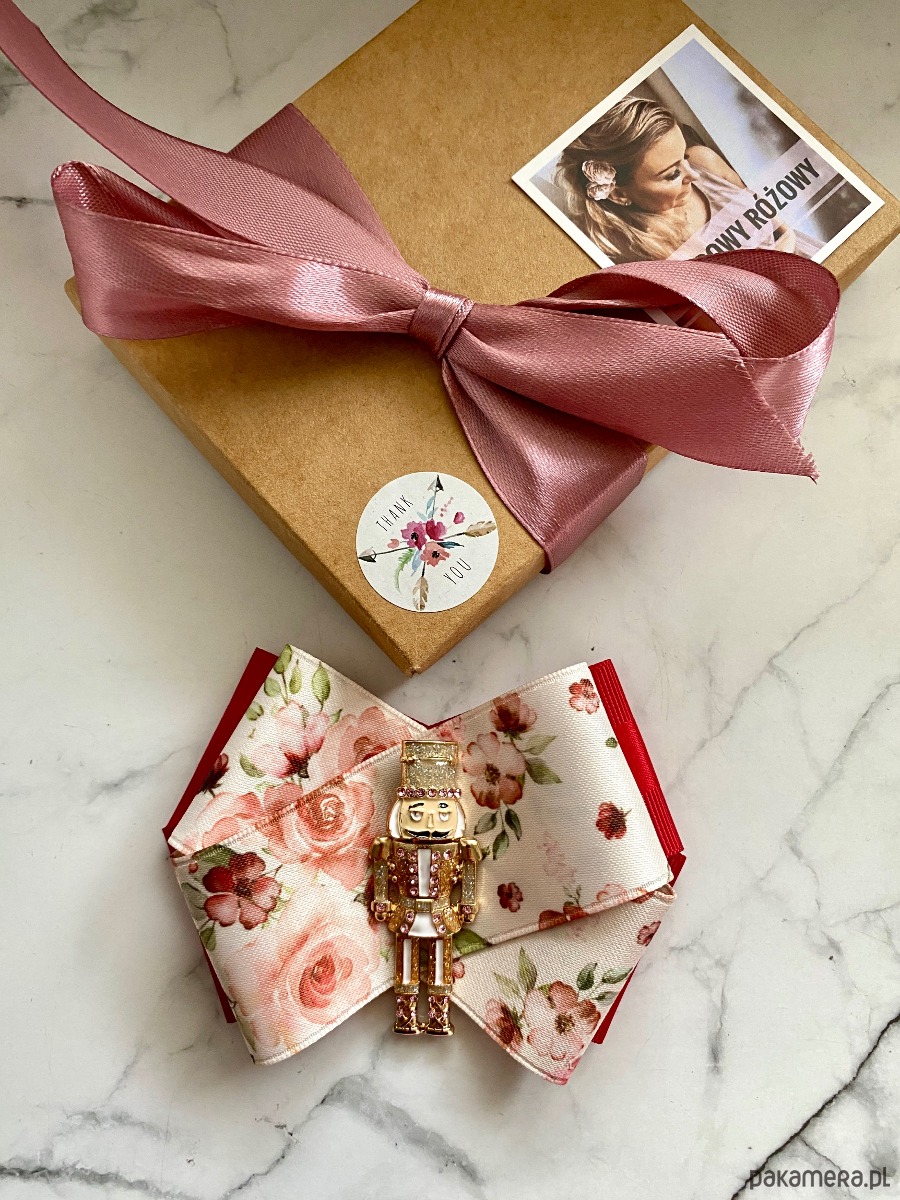 Broszka wykonana z wysokiej jakości taśm i dodatków.