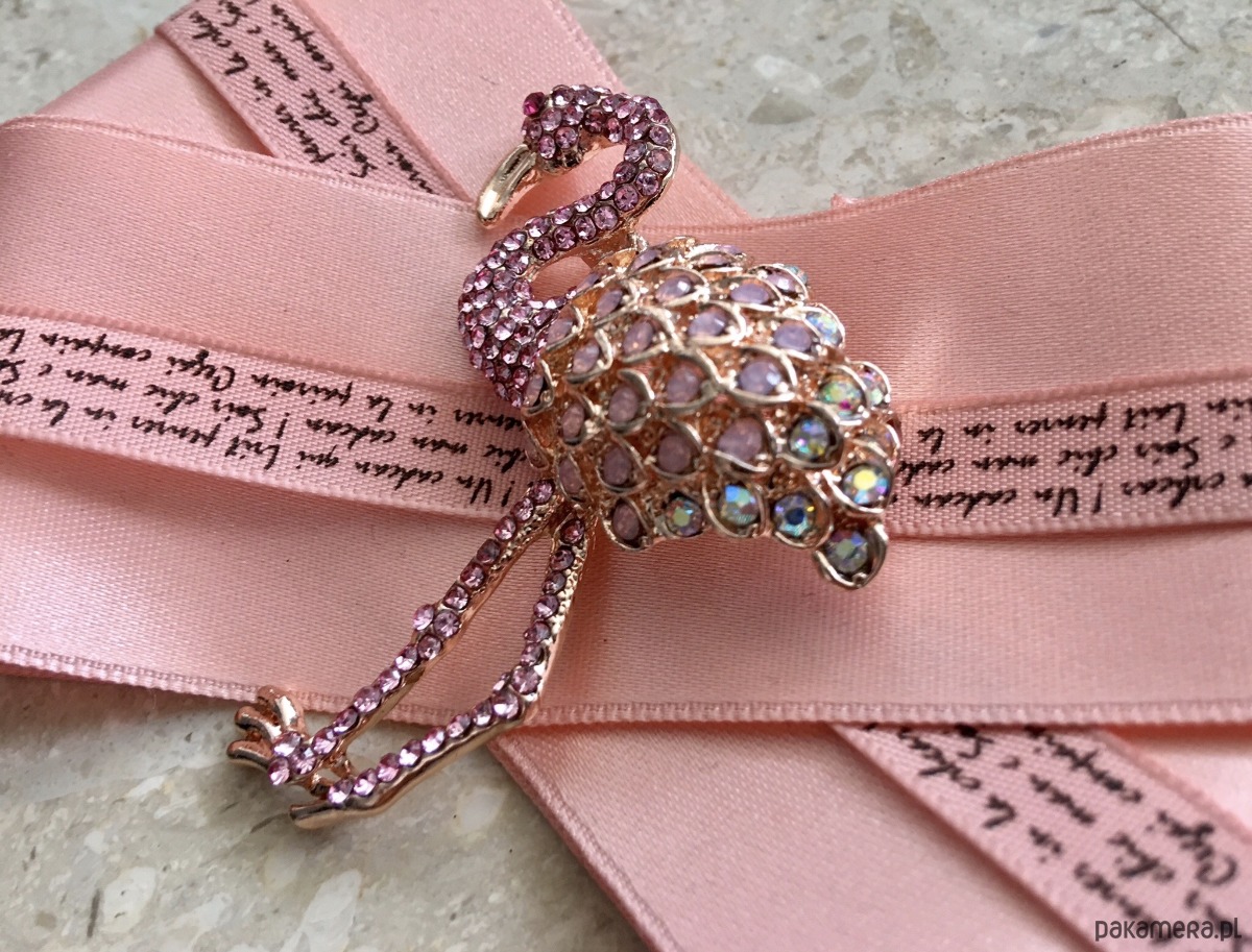 Broszka wykonana z wysokiej jakości taśm i dodatków. Broszka w kolorach delikatnego różu Piękna duża dekoracyjna ozdoba Flaming z kolorowych kryształków na środku. Będzie idealnie pasować zarówno do koszul, bluzek, swetrów, sukienek, żakietów oraz do płaszczy, kurtek, szali i chust. Idealna do każdej stylizacji, zarówno do sportowej jak również do eleganckich stylizacji.
