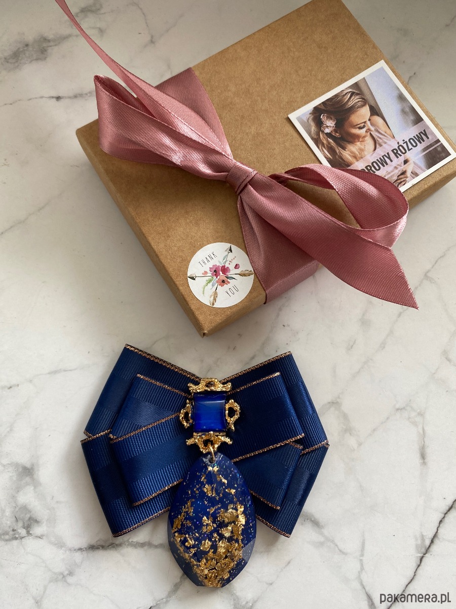 Broszka wykonana z wysokiej jakości taśm i dodatków.