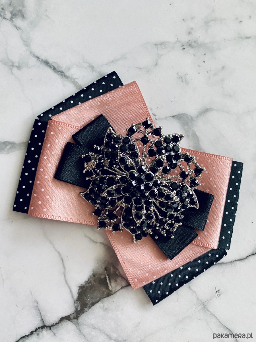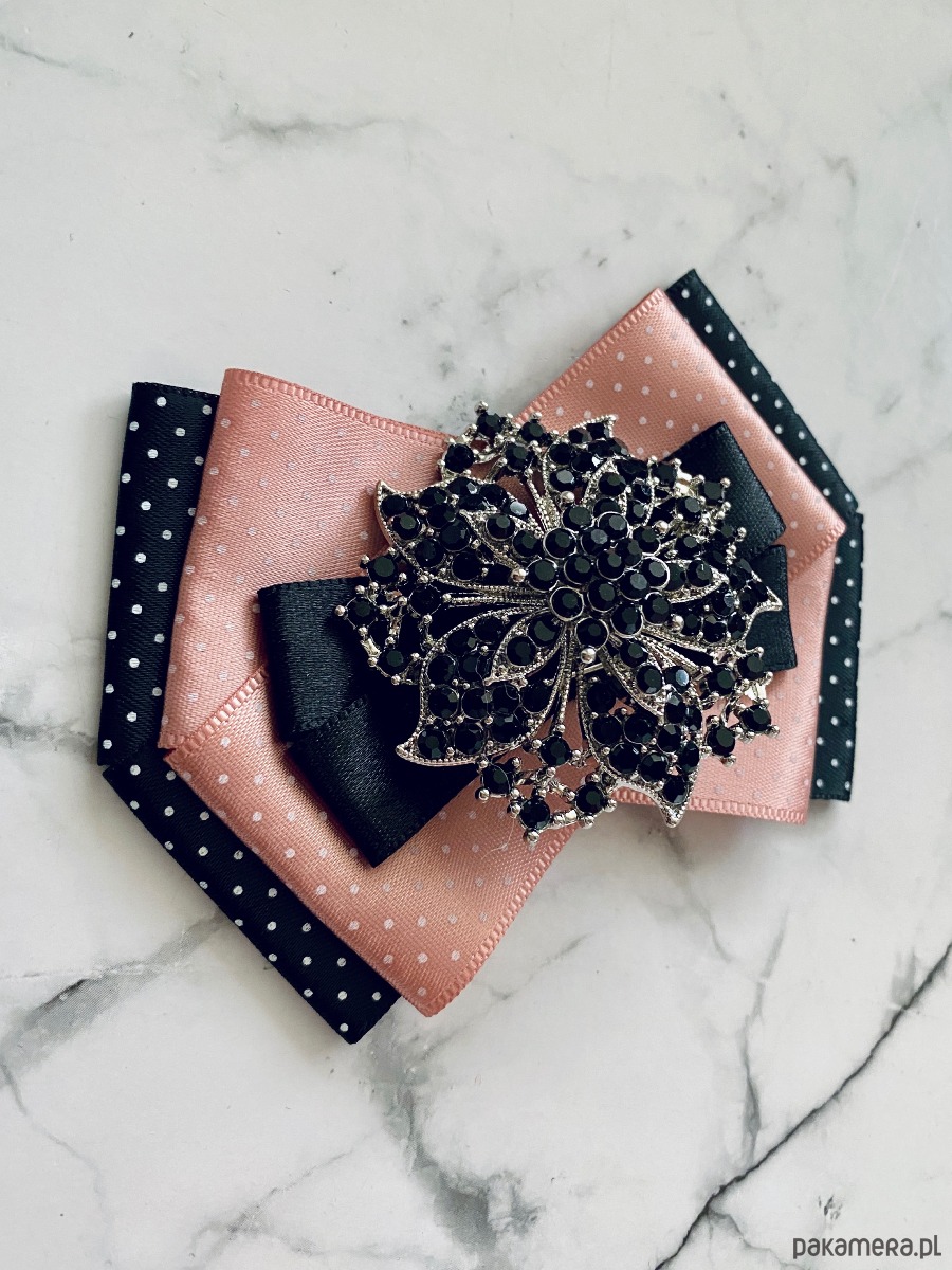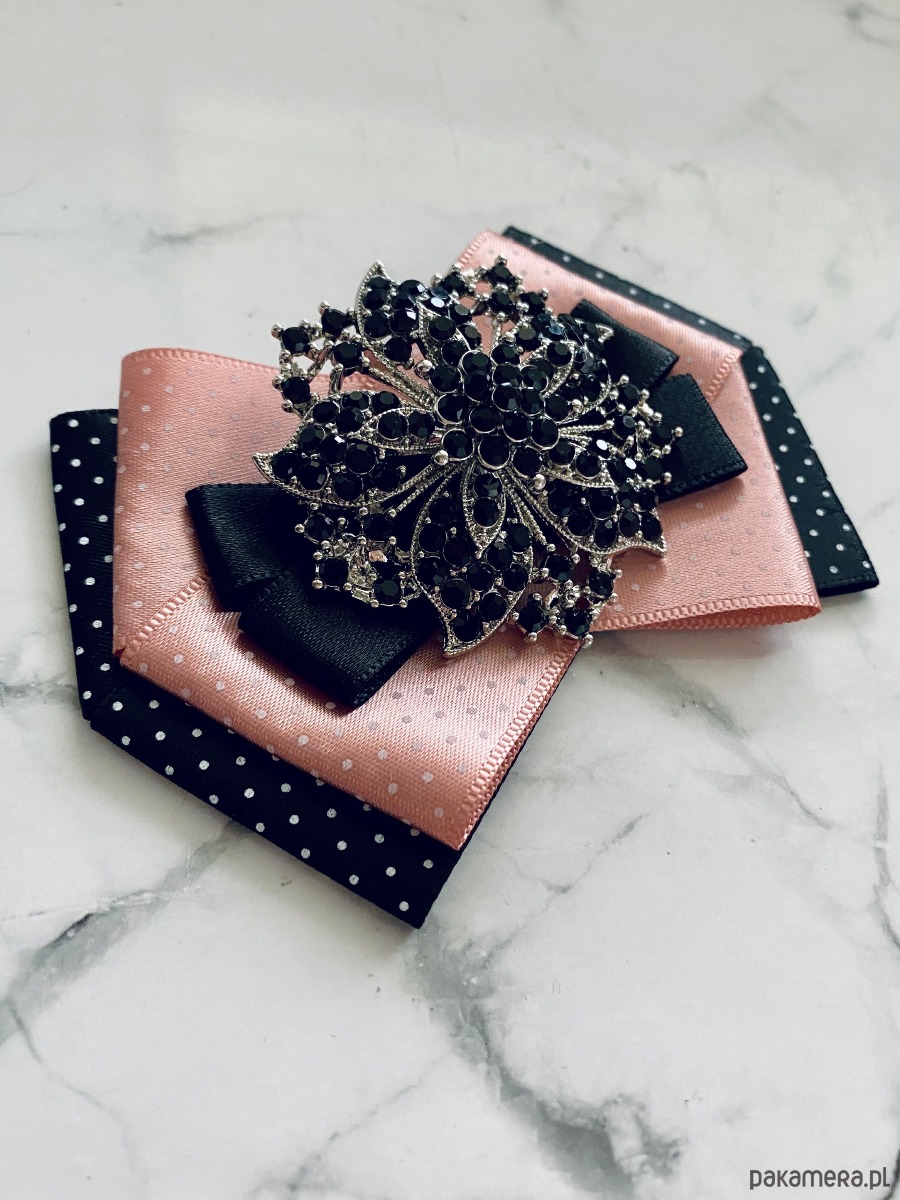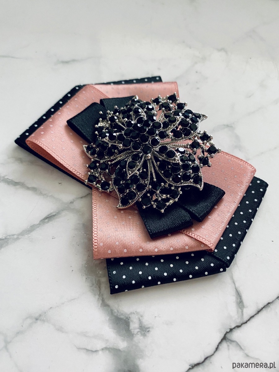 Broszka wykonana z wysokiej jakości taśm i dodatków.