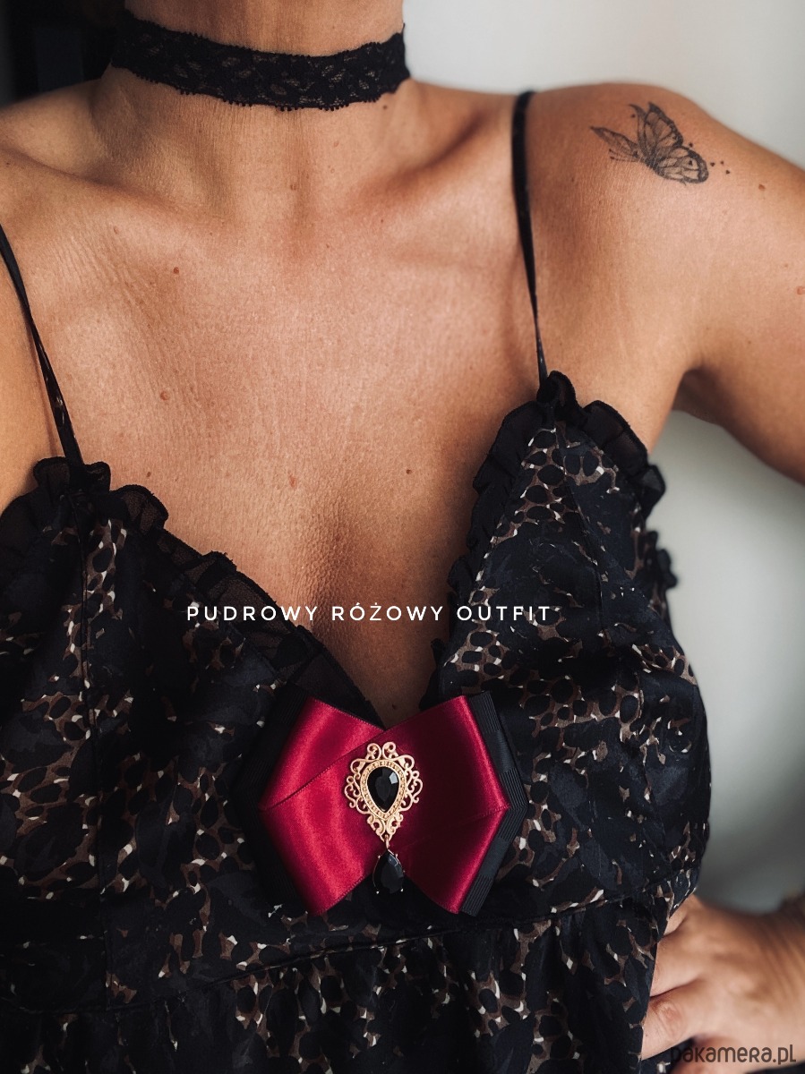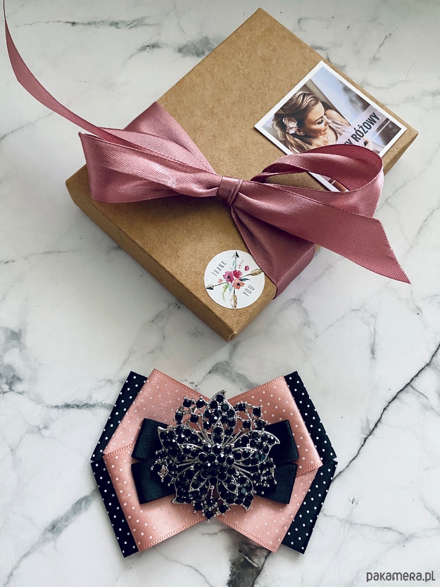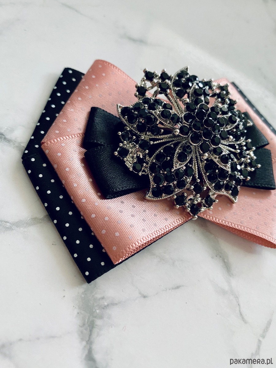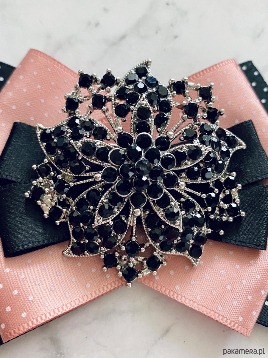 Broszka wykonana z wysokiej jakości taśm i dodatków.