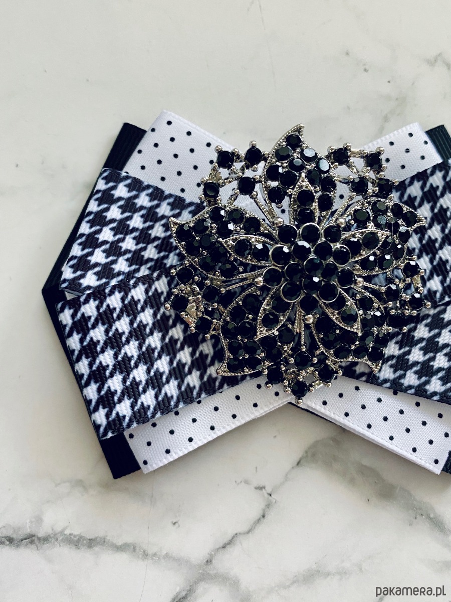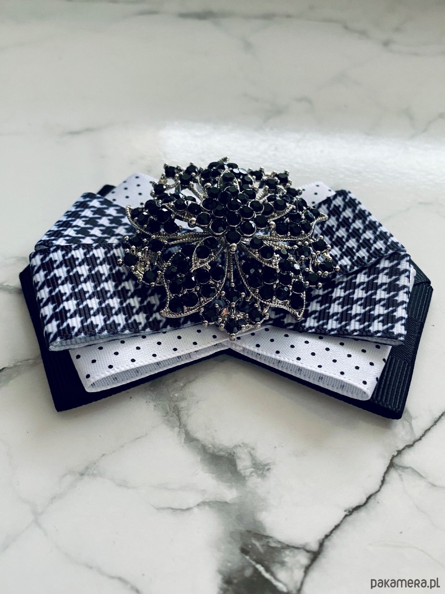 Broszka wykonana z wysokiej jakości taśm i dodatków.