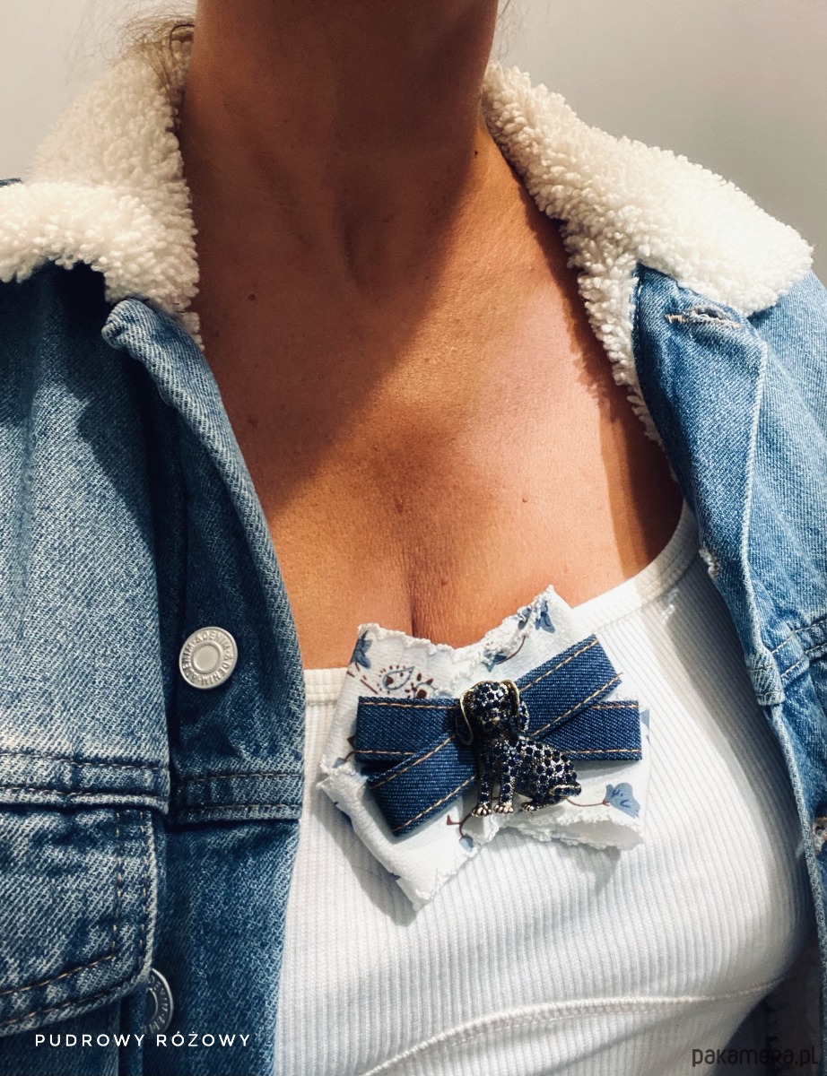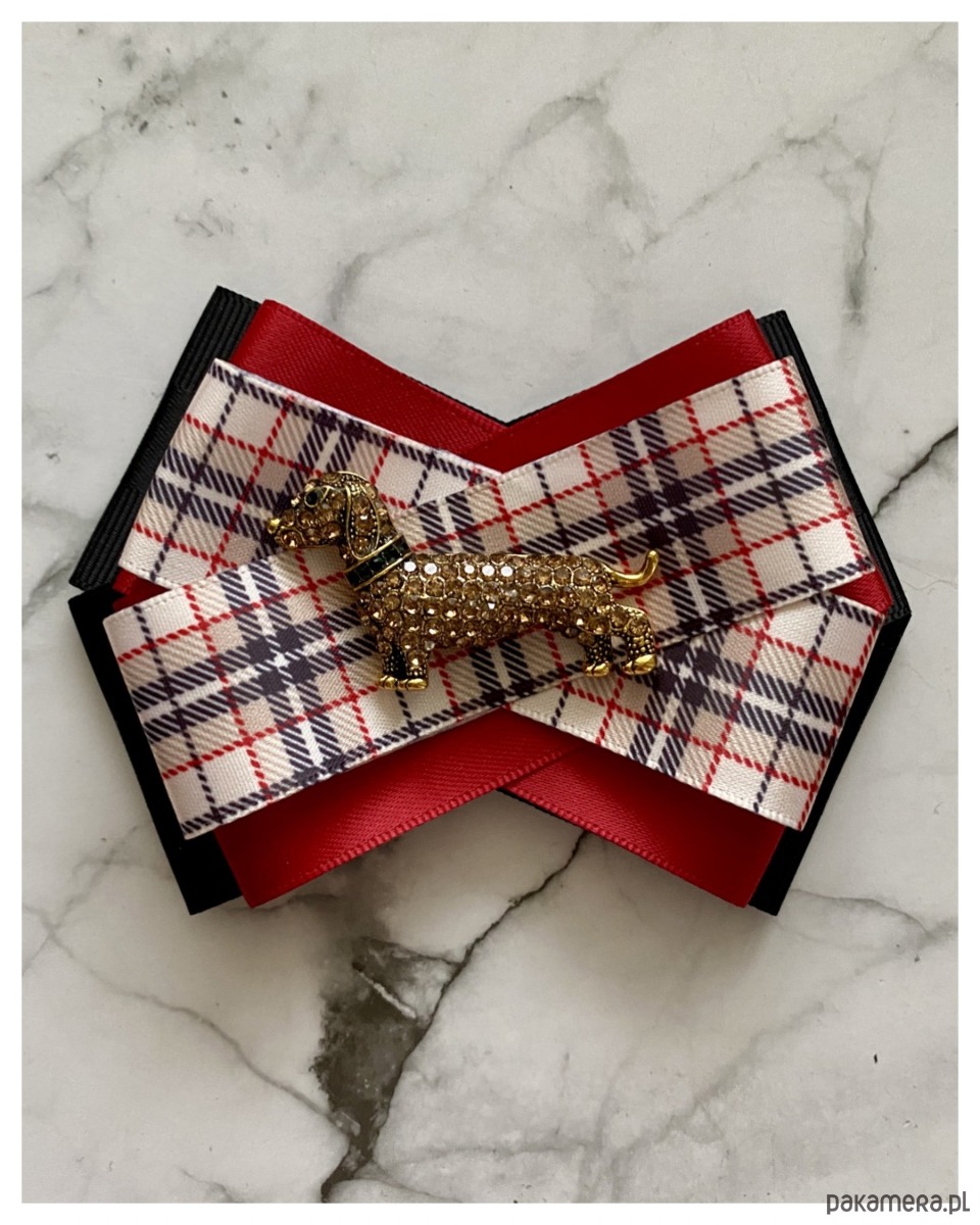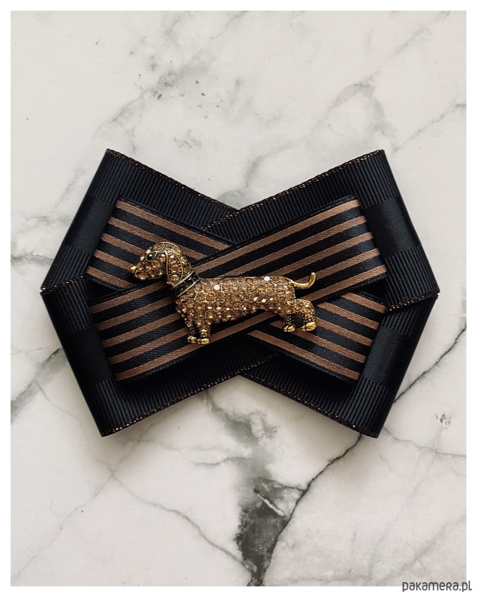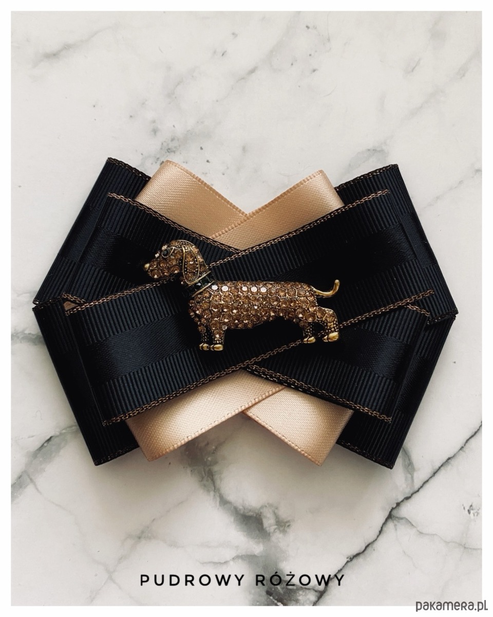 Broszka wykonana z wysokiej jakości taśm i dodatków.