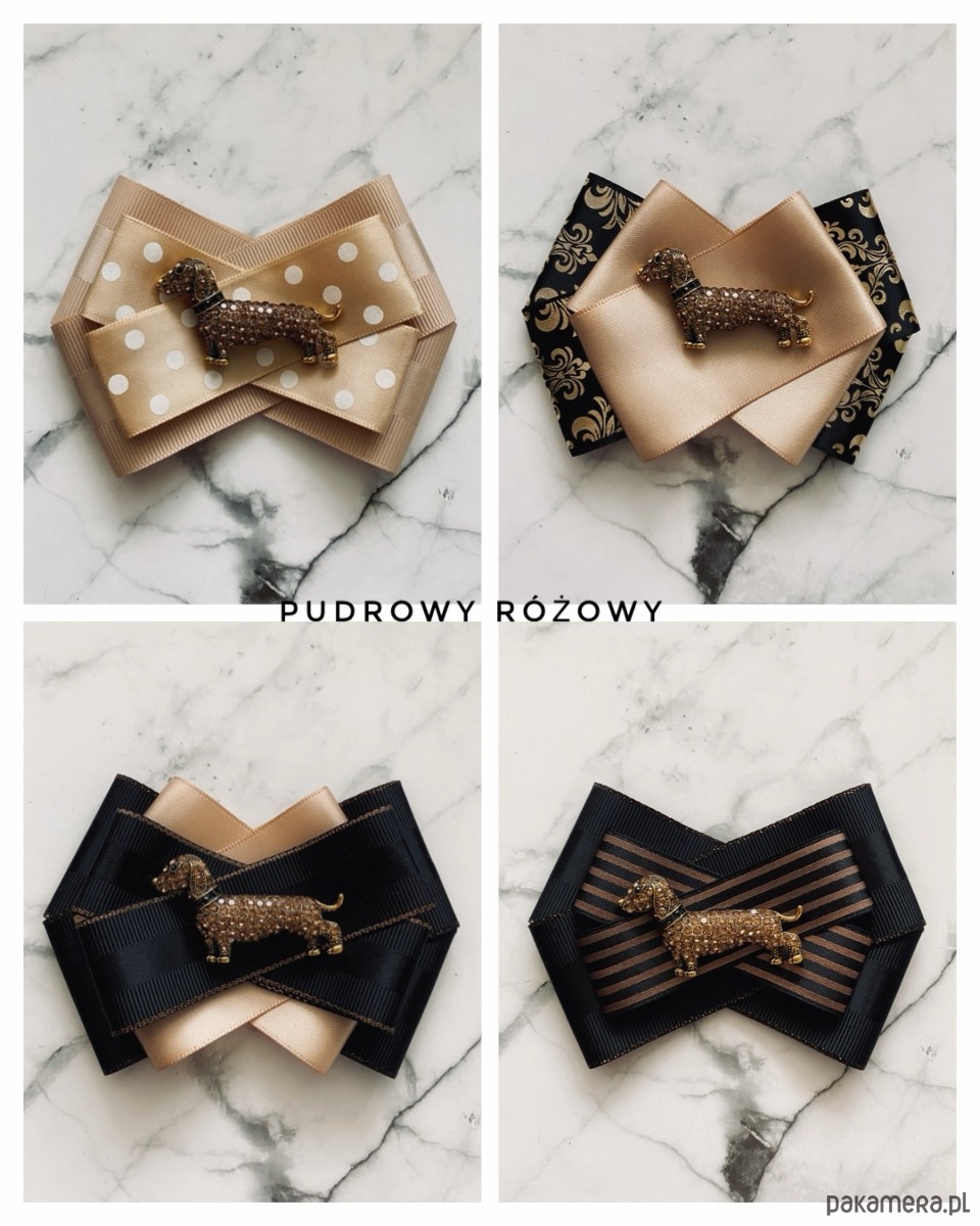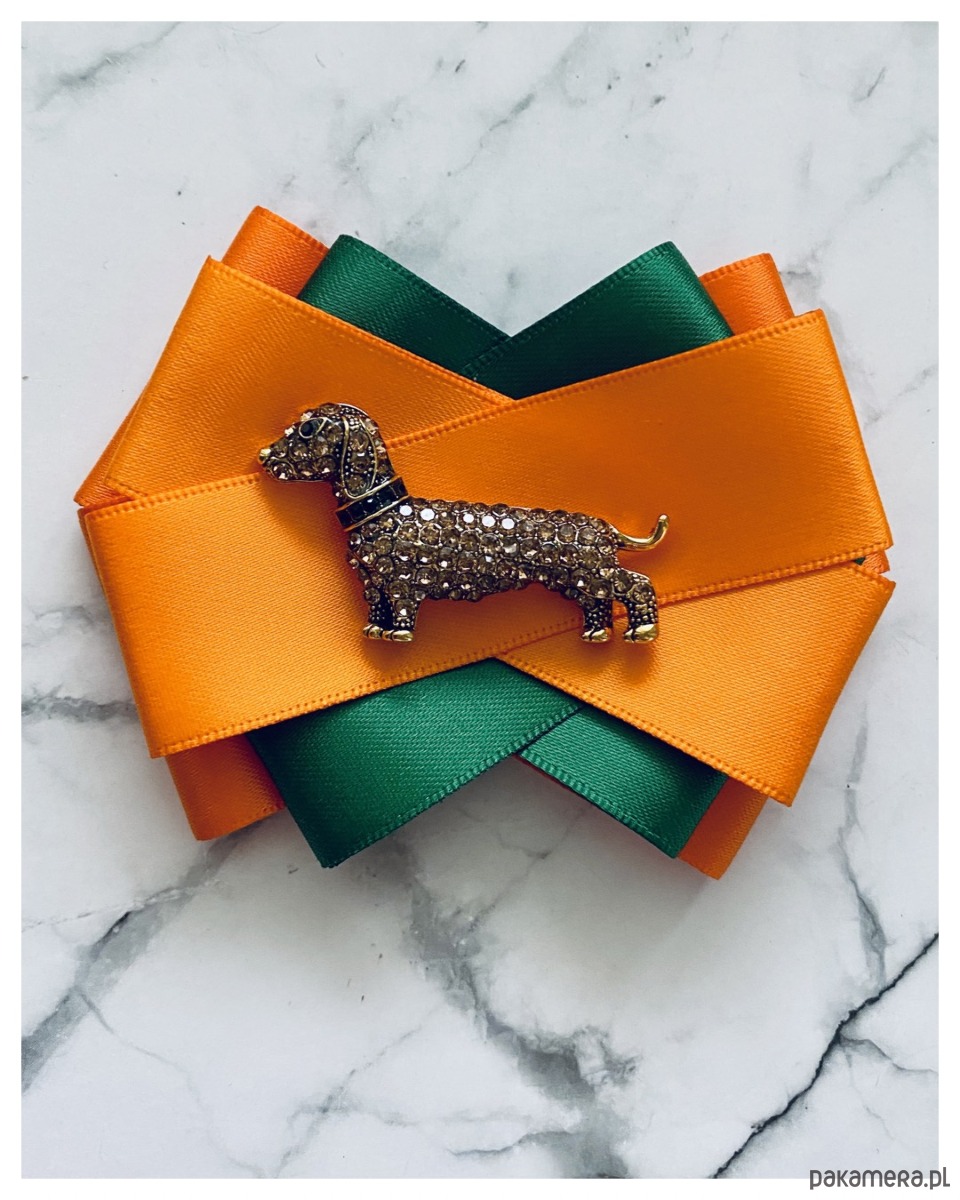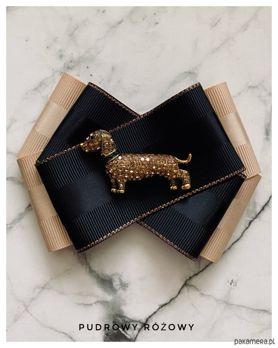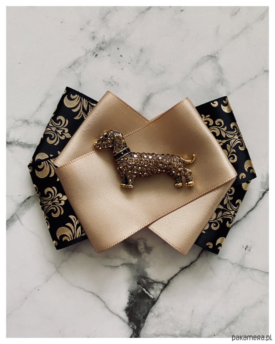 Broszka wykonana z wysokiej jakości taśm i dodatków.
