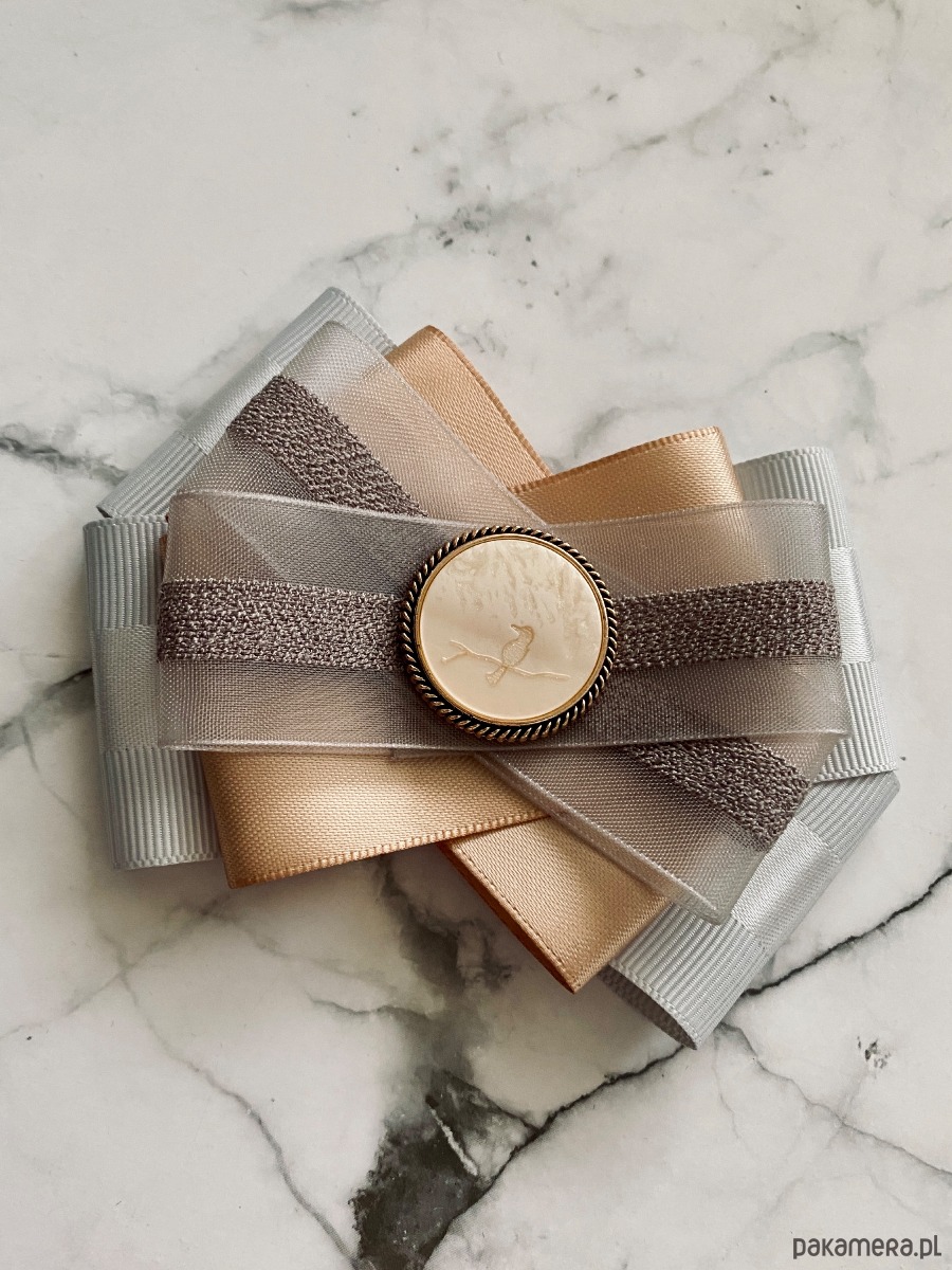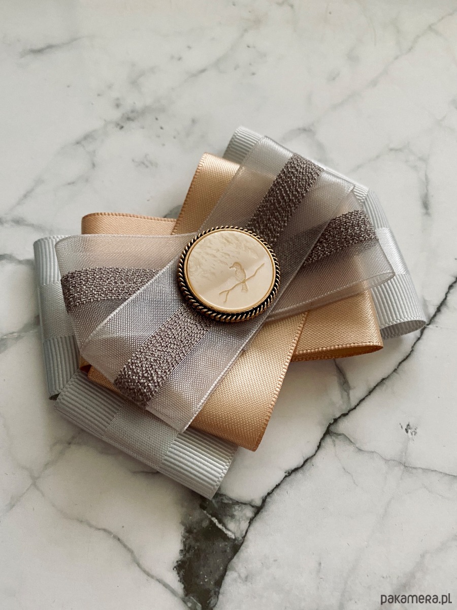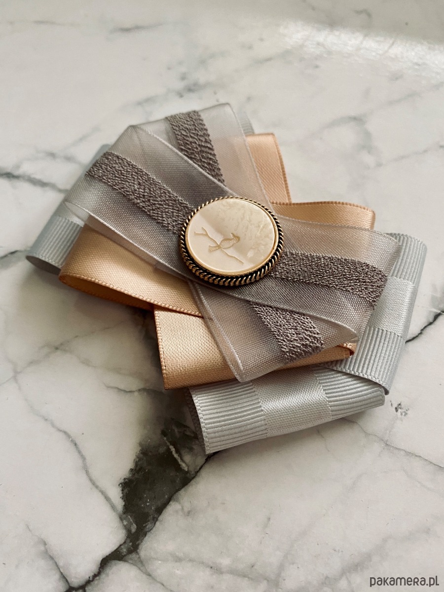 Brosza w kolorze delikatnej szarości i klasycznego beżu z dodatkiem tiulu.
