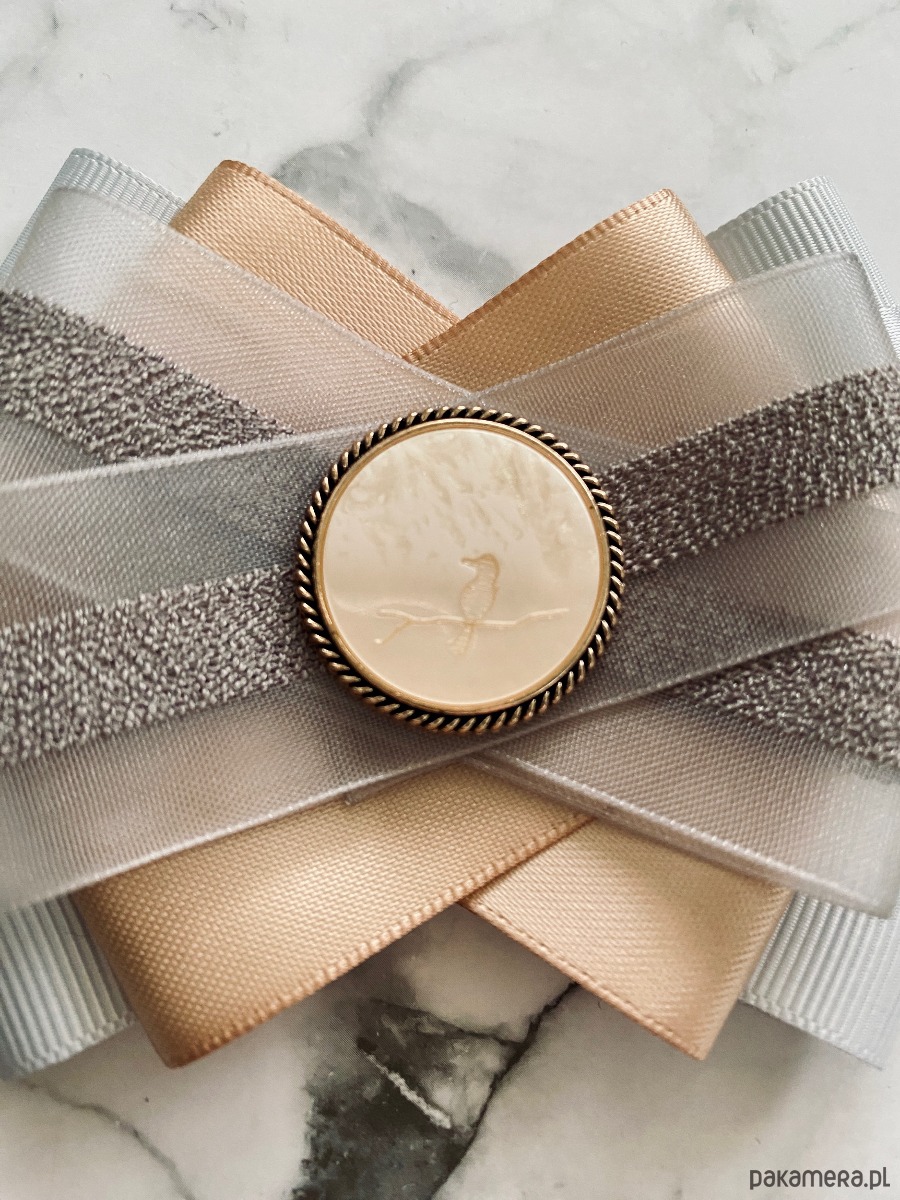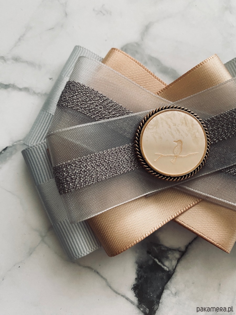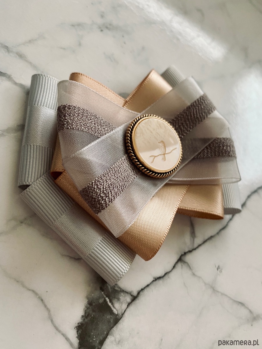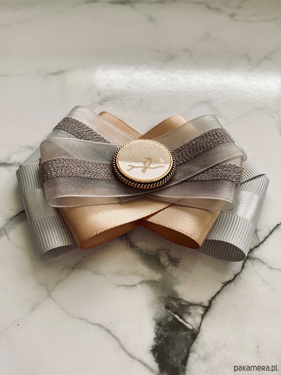 Brosza w kolorze delikatnej szarości i klasycznego beżu z dodatkiem tiulu.