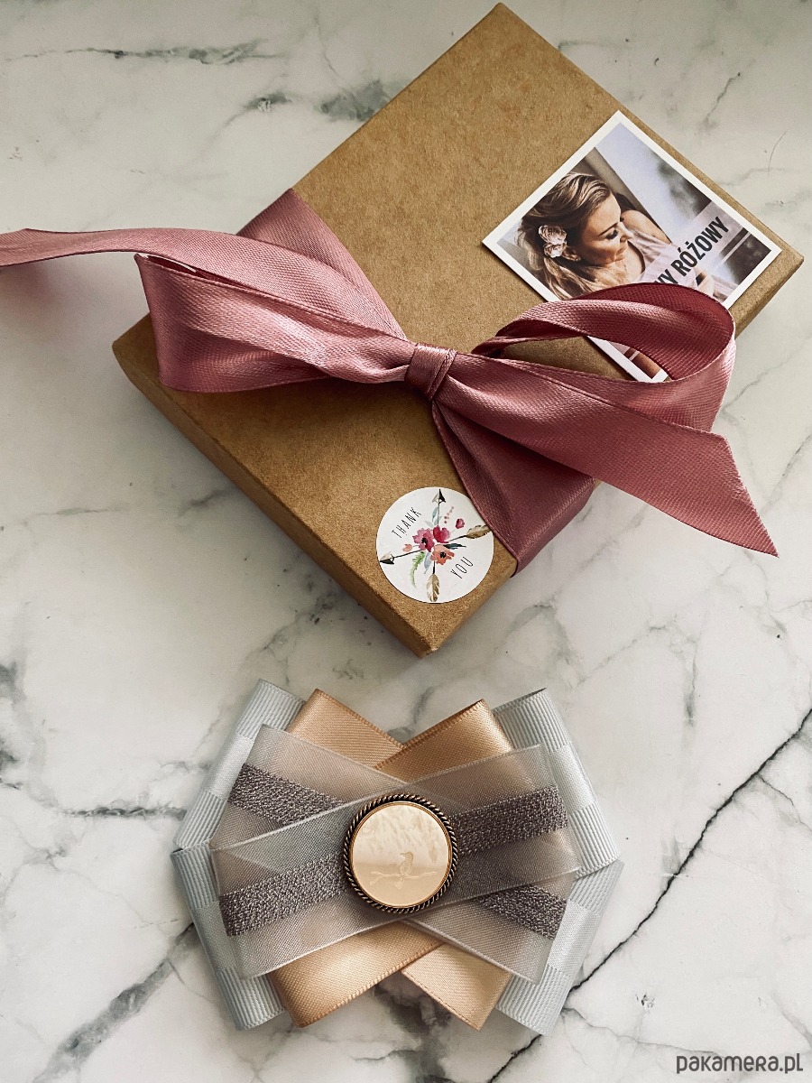 Broszka wykonana z wysokiej jakości taśm i dodatków.