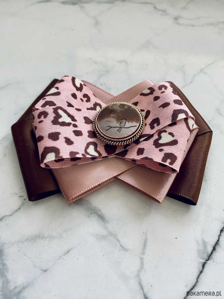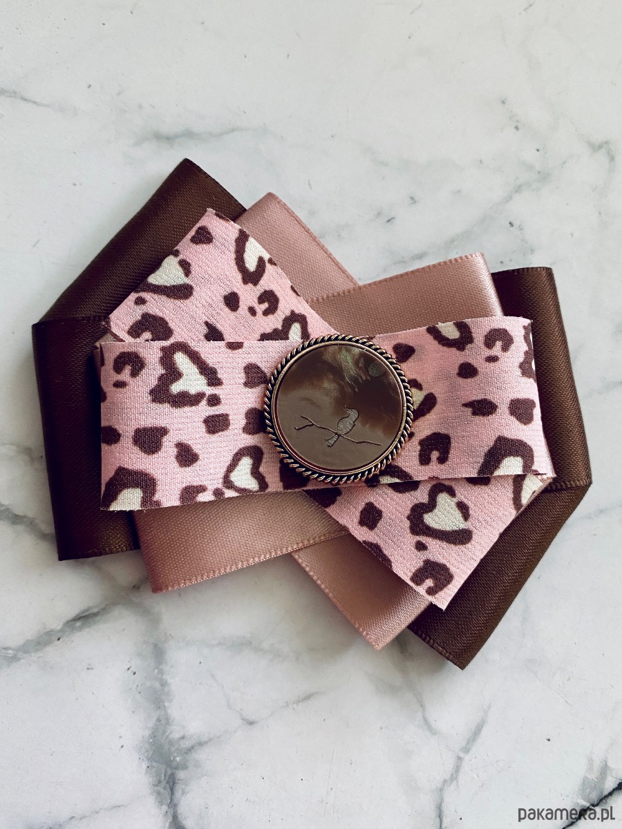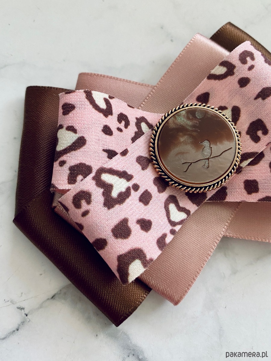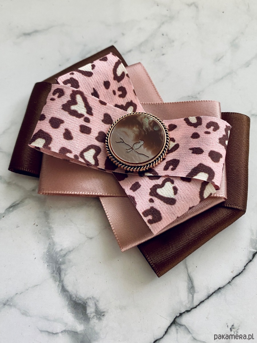 Brosza w kolorze czekoladowego brązu i pudrowego różu z dodatkiem cudnej wstążki w centki.