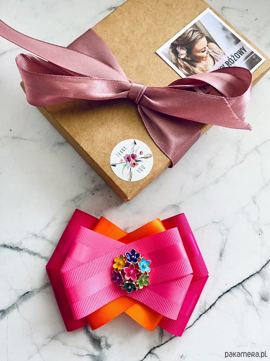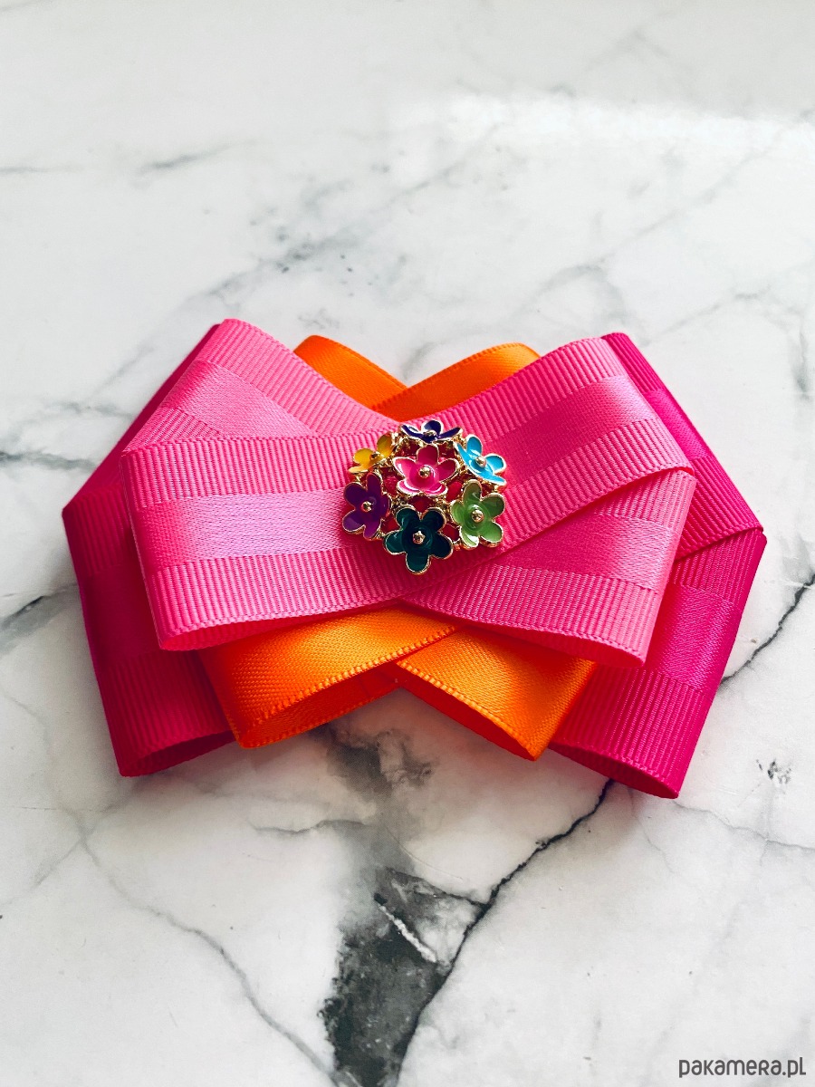 Broszka wykonana z wysokiej jakości taśm i dodatków.
