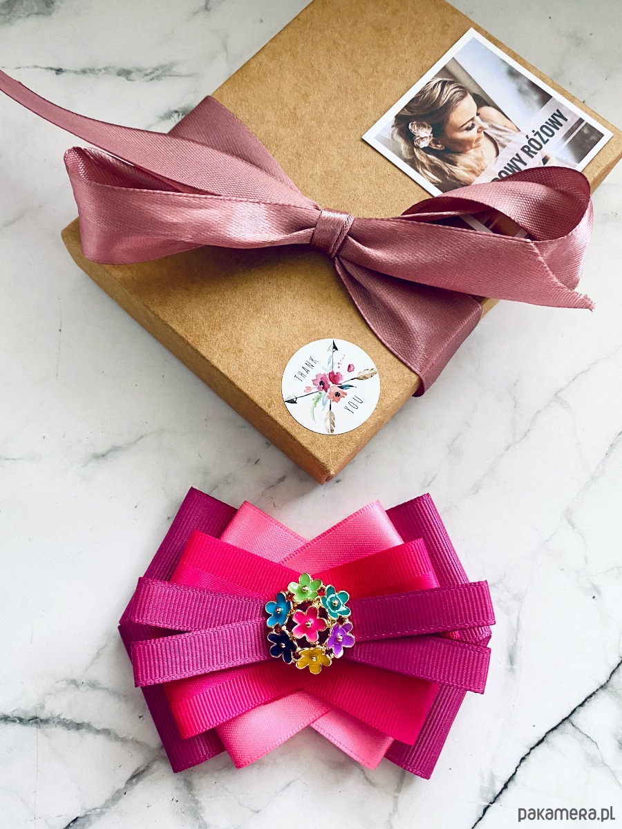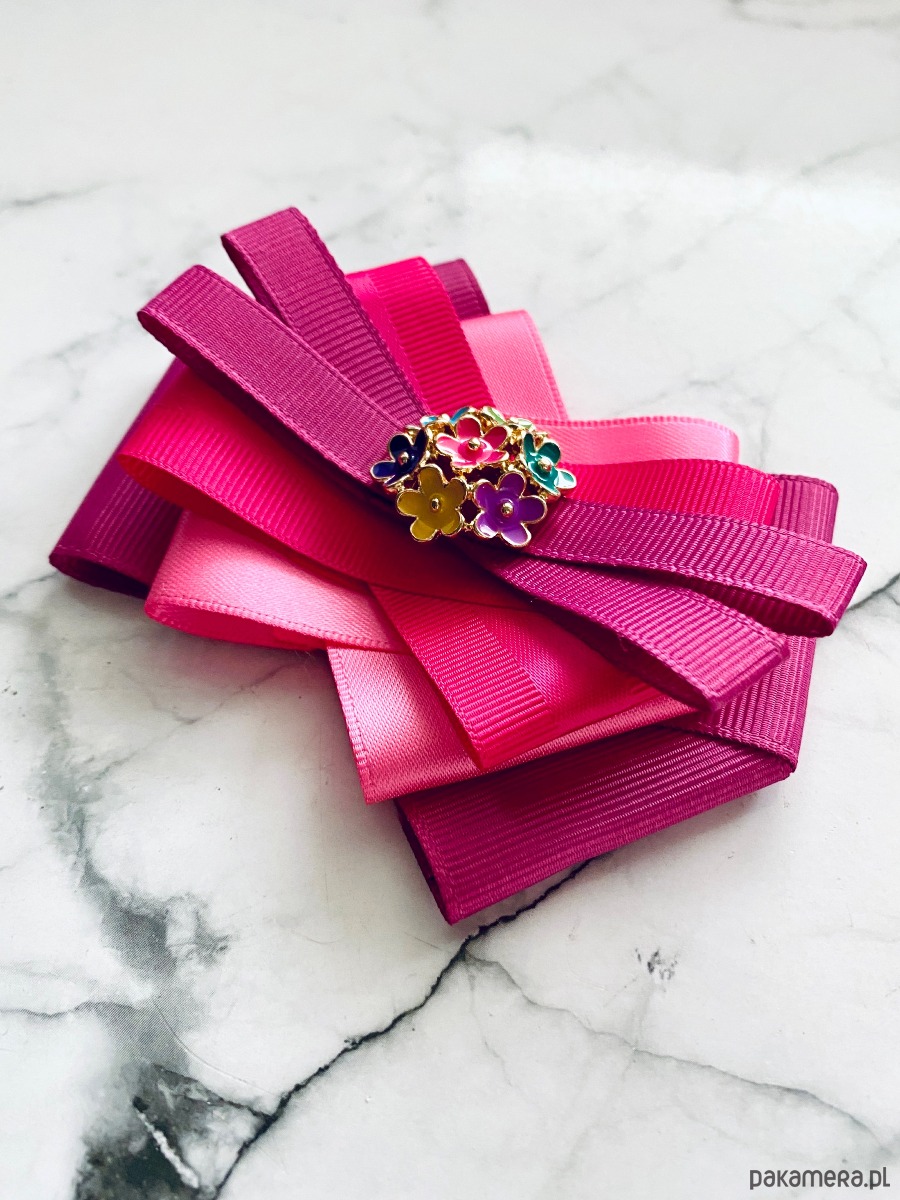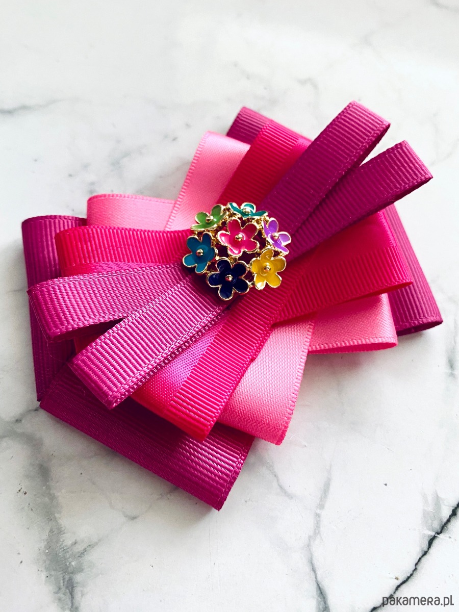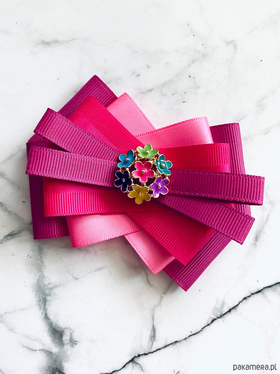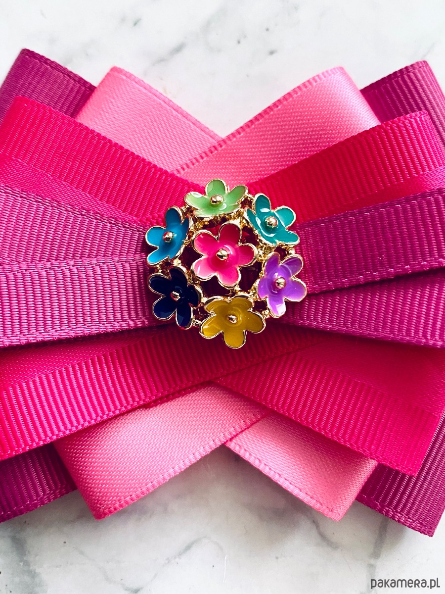 Broszka wykonana z wysokiej jakości taśm i dodatków.