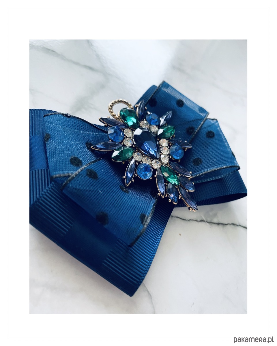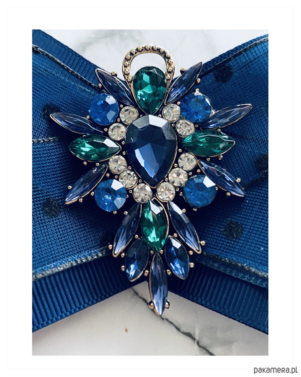 Brosza z kolekcji COLOR z granatowymi i szmaragdowymi kryształkami